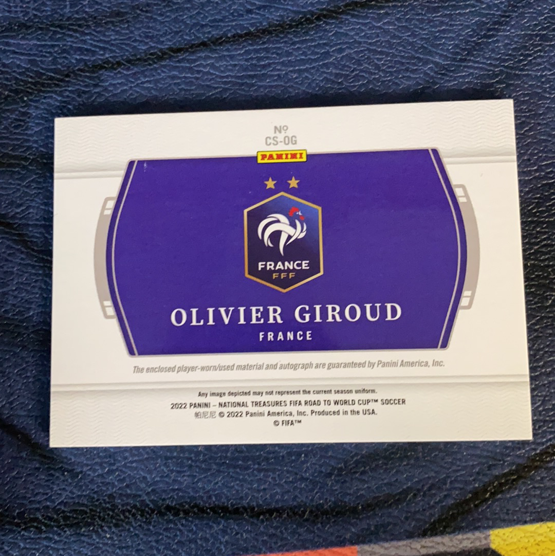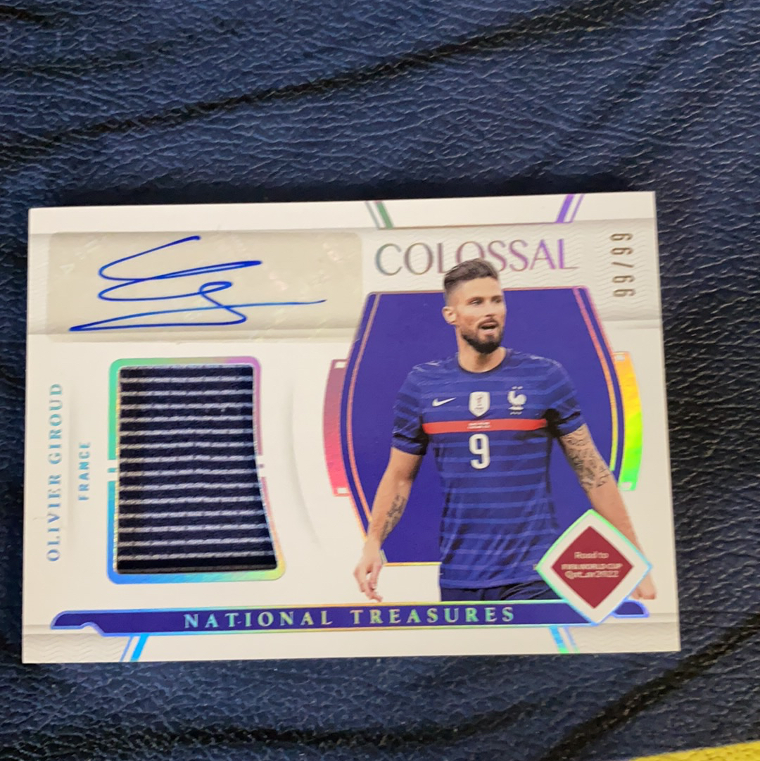 2022 Panini National Treasures Olivier Giroud 吉鲁 法国 世界杯国宝 99/99编 尾编 4个9 签字 物料 亲穿 收藏必备(马丁