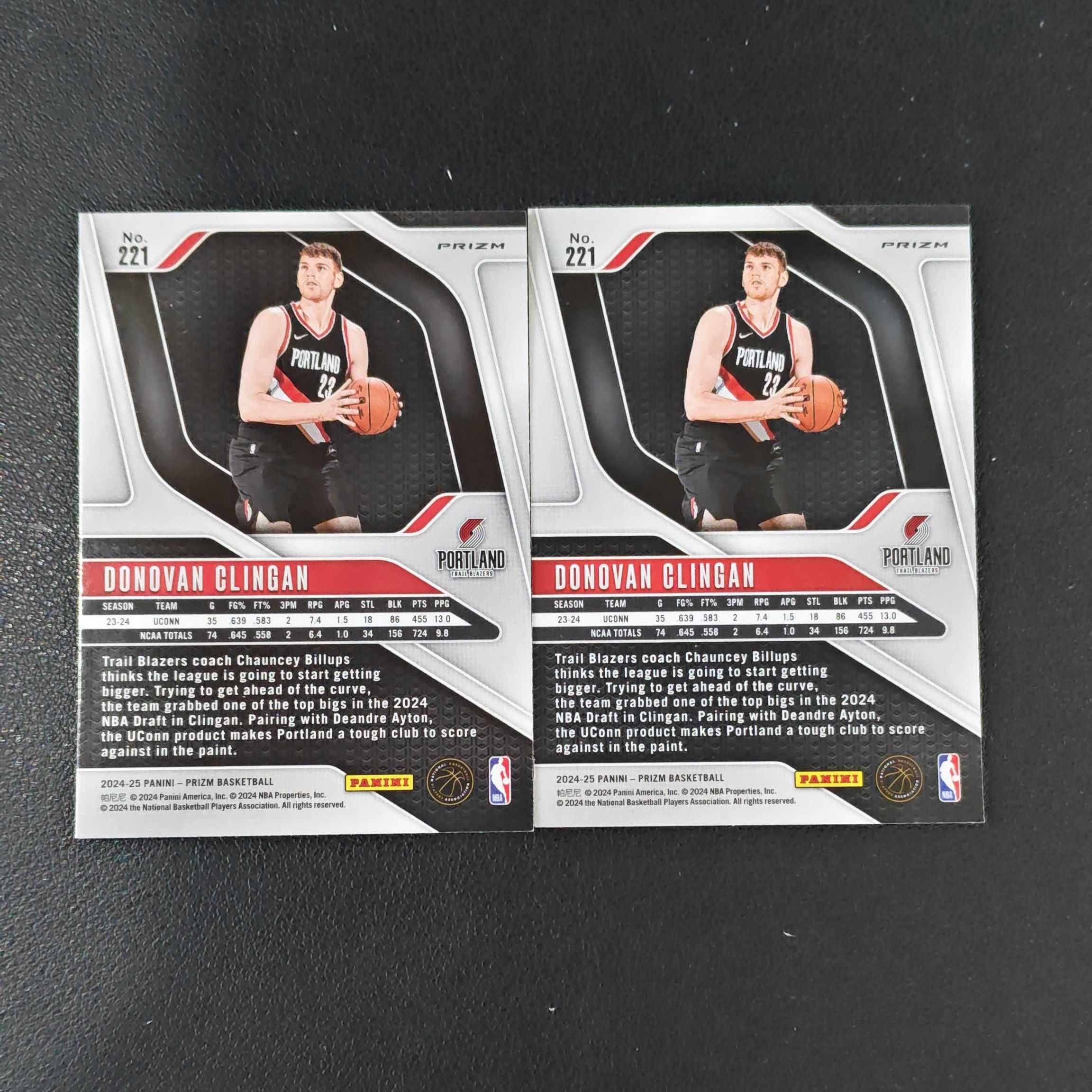 2024-25 Panini Prizm Donovan Clingan RC prizm 多诺万 克林根 RC 新秀 银折 开拓者