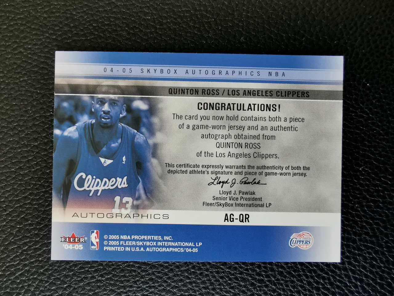 【金矿拍卖】2004-05 fleer skybox autographics 快船新秀rc 昆顿罗斯 quinton ross 签字 落场球衣切割 rja 小天