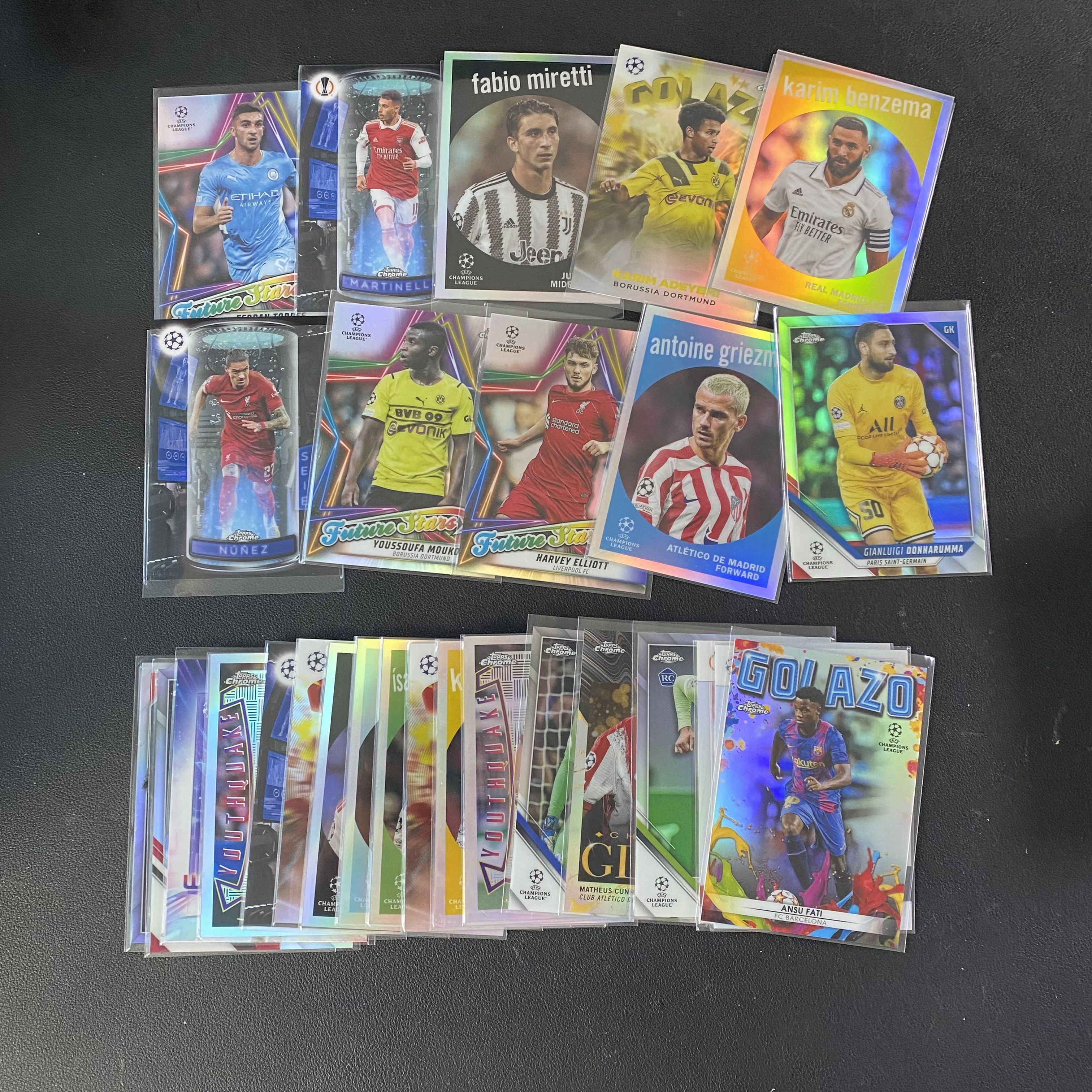 【TSS代卖-预付80%】各年份 Topps chrome 欧冠 多特皇马利物浦 多纳鲁马/努涅斯/马丁内利/穆科科/本泽马/阿德耶米 等 28张 银折 lot打包 JH4527 ZTK87-園