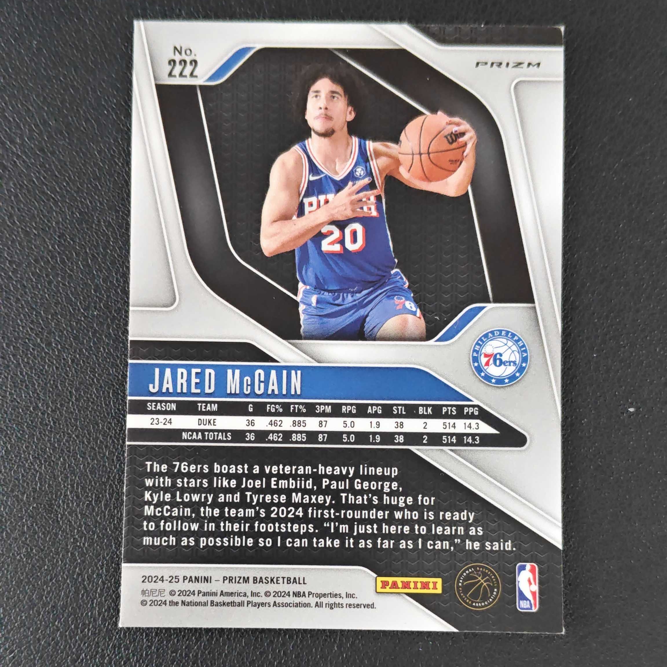 2024-25 Panini Prizm Jared McCain RC prizm 贾里德 麦凯恩 魔仙哥 RC 新秀 粉碎冰折 76人