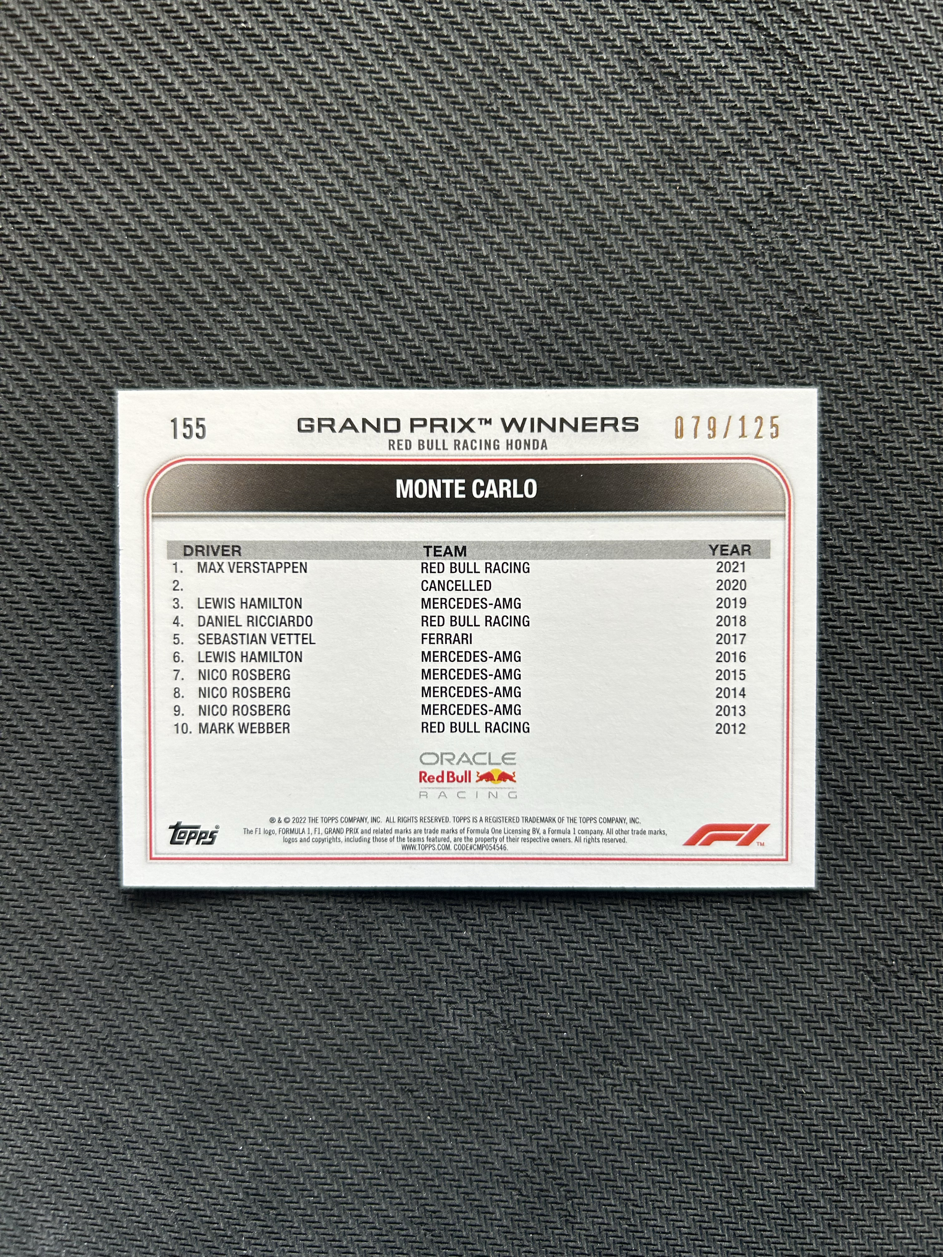 2022 Topps Racing Max Verstappen F1 维斯塔潘 125编 黄折 红牛车队 荷兰车手 蒙特卡洛大奖赛 分站冠军 实卡精美 专收凑套必备 卡品如图!