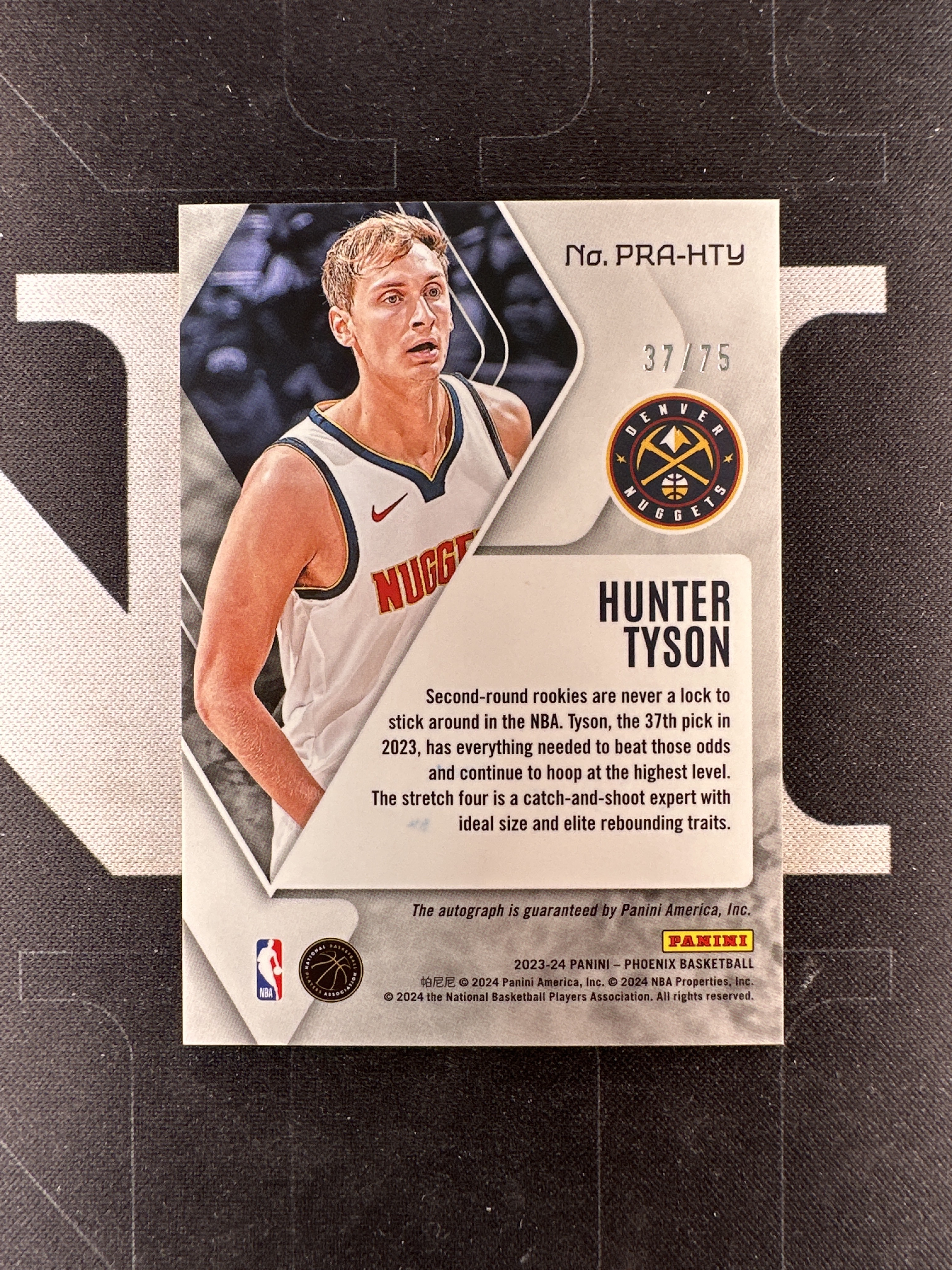 2023-24 Panini PHOENIX Hunter Tyson RC 【星卡岛卡社】23-24 凤凰 掘金新秀 亨特泰森 贴签 37/75编 卡品完美 收藏必备(老王)