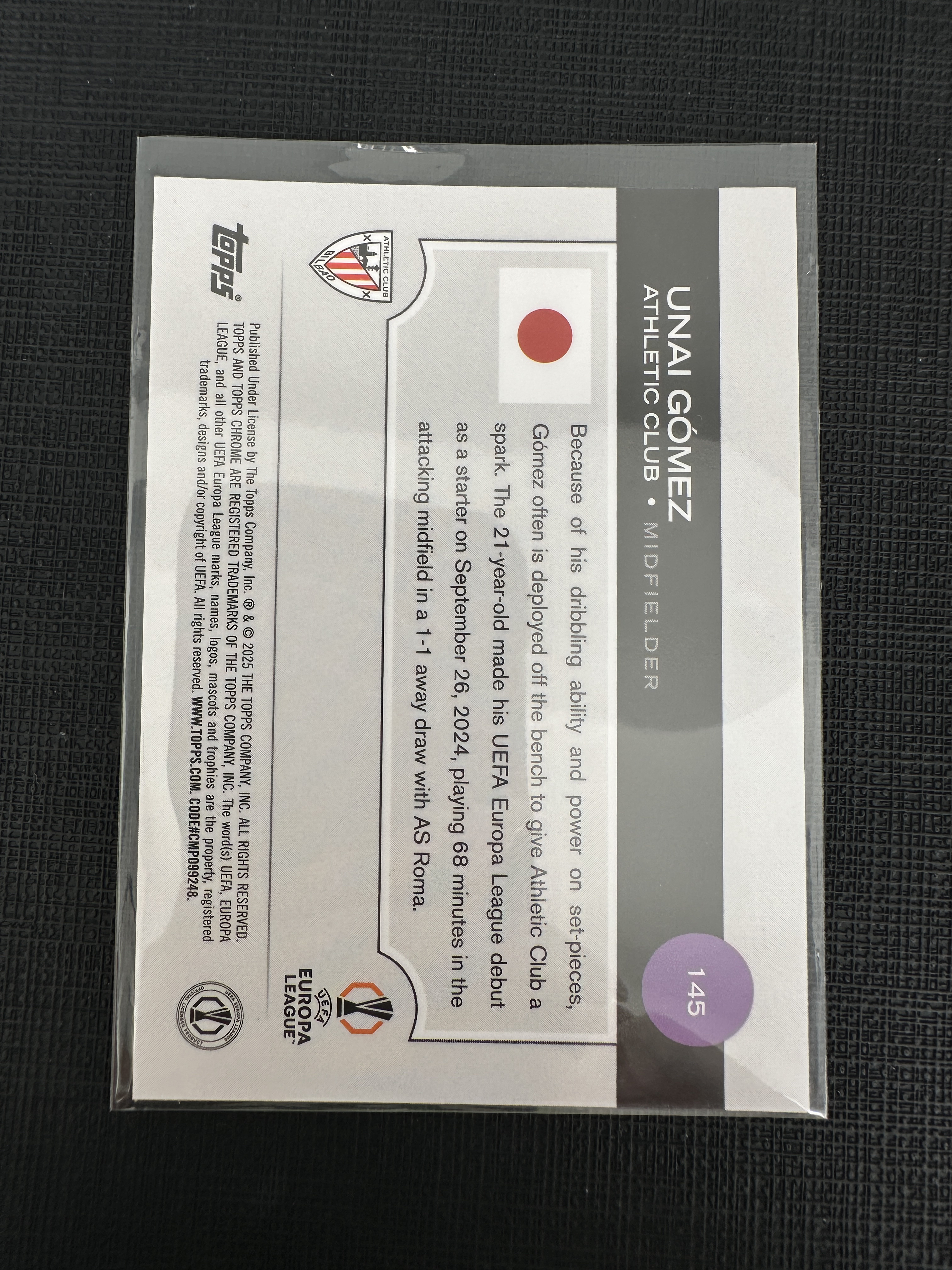 2025 Topps Chrome unai gomez RC 乌奈 戈麦斯 毕尔巴鄂 欧冠 tc 日本限定 樱花 150编 黄mojo折【默认微瑕一日一快递 不累计 不发到付】卡k