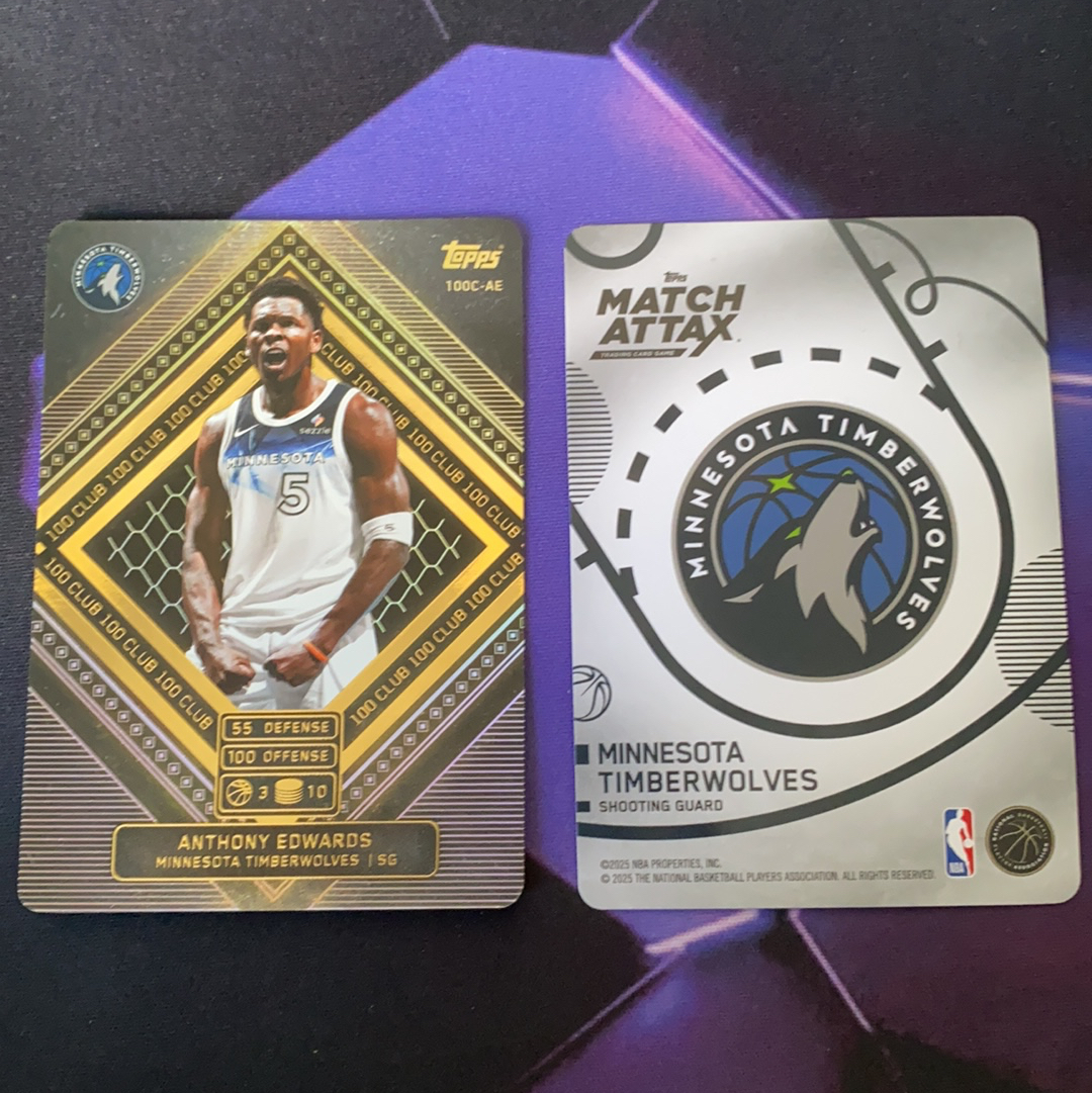2025 Topps Match Attax Anthony Edwards 安东尼 爱德华兹 华子 森林狼 百分俱乐部 特卡 对战卡 卡品如图 2张 打包 lot p-接上拍