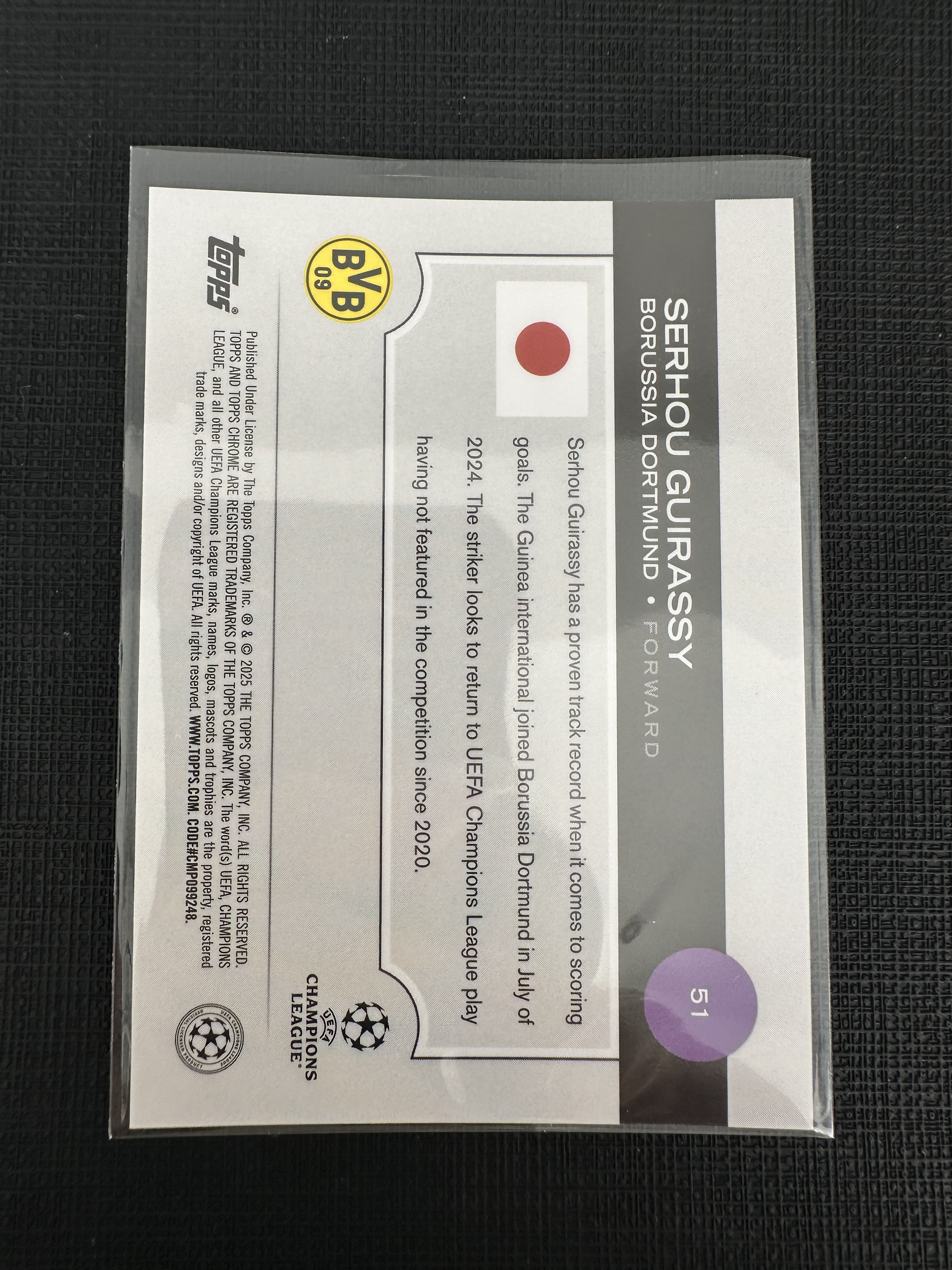 2024-25 Topps Chrome Serhou Guirassy 欧冠欧战TC 日版 塞尔霍 吉拉西 多特蒙德75编 蓝mojo折【默认微瑕一日一快递 不累计 不发到付】卡k