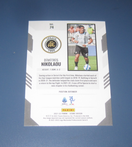 2021-22 Panini score Dimitris Nikolaou 【凯哥拍卖】帕尼尼 score 意甲 球星卡 限量 99编 斯佩齐亚 尼克拉乌 极微小瑕疵 品相如图