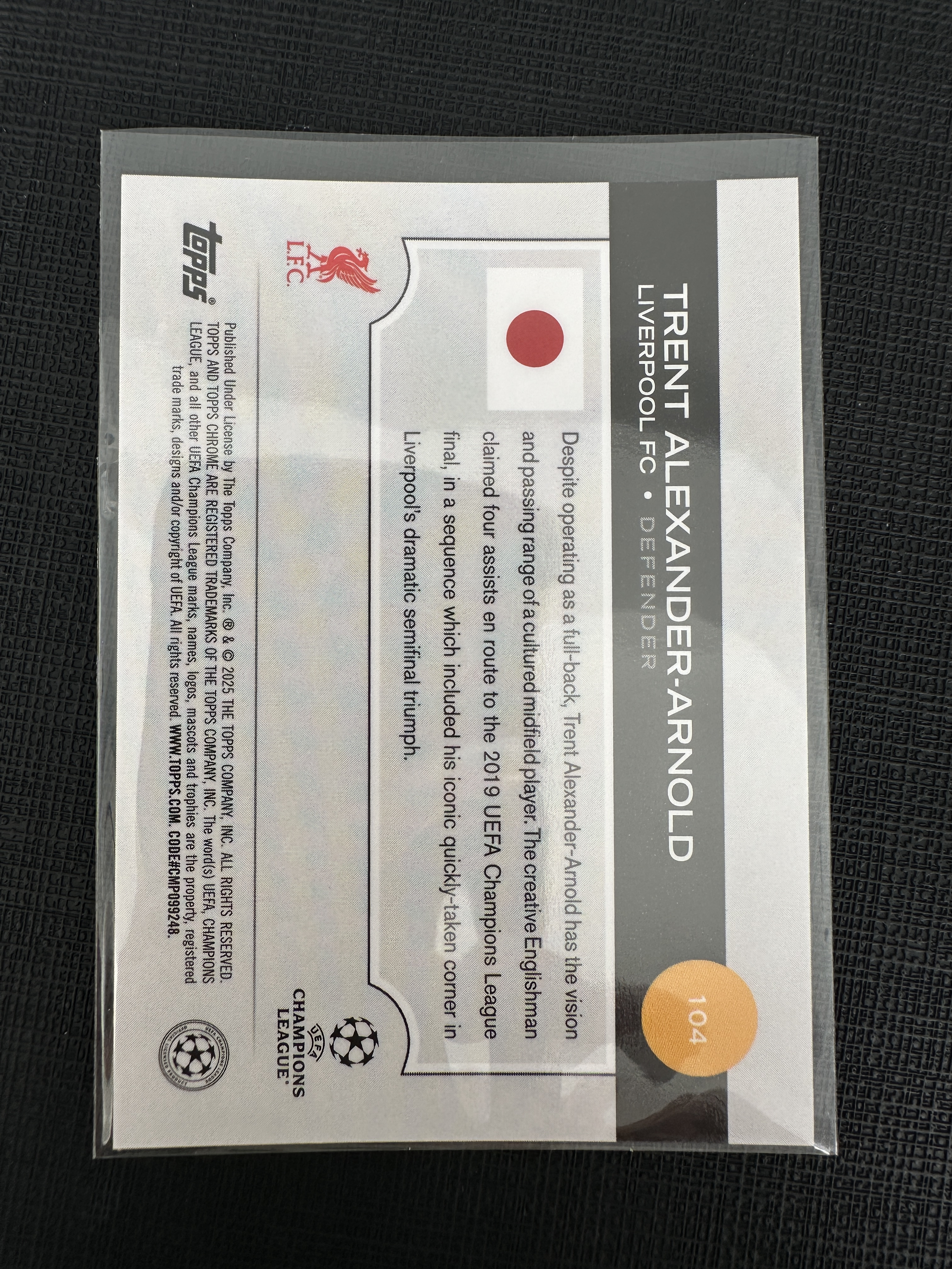 2025 Topps Chrome Trent Alexander Arnold 欧冠TC 利物浦 mojo折/150编 特伦特 亚历山大 阿诺德 【默认微瑕一日一快递 不累计 不发到付】卡k