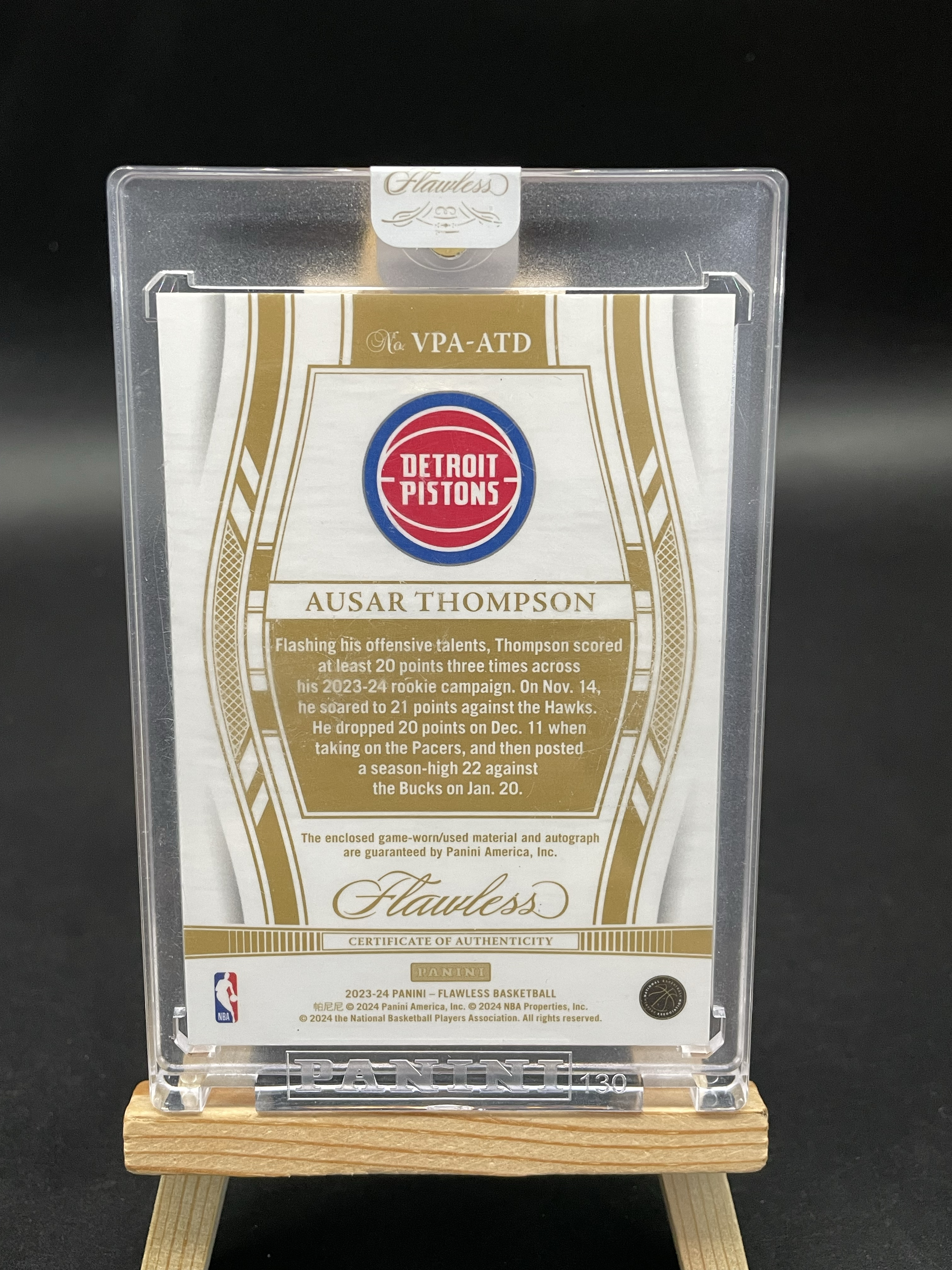 2023-24 Panini Flawless Ausar Thompson RC 【白鸟代卖 无名】手提 奥萨尔 汤普森 新秀 1/5编 首编 RPA VPA 签字 卡签 patch球衣 原封砖