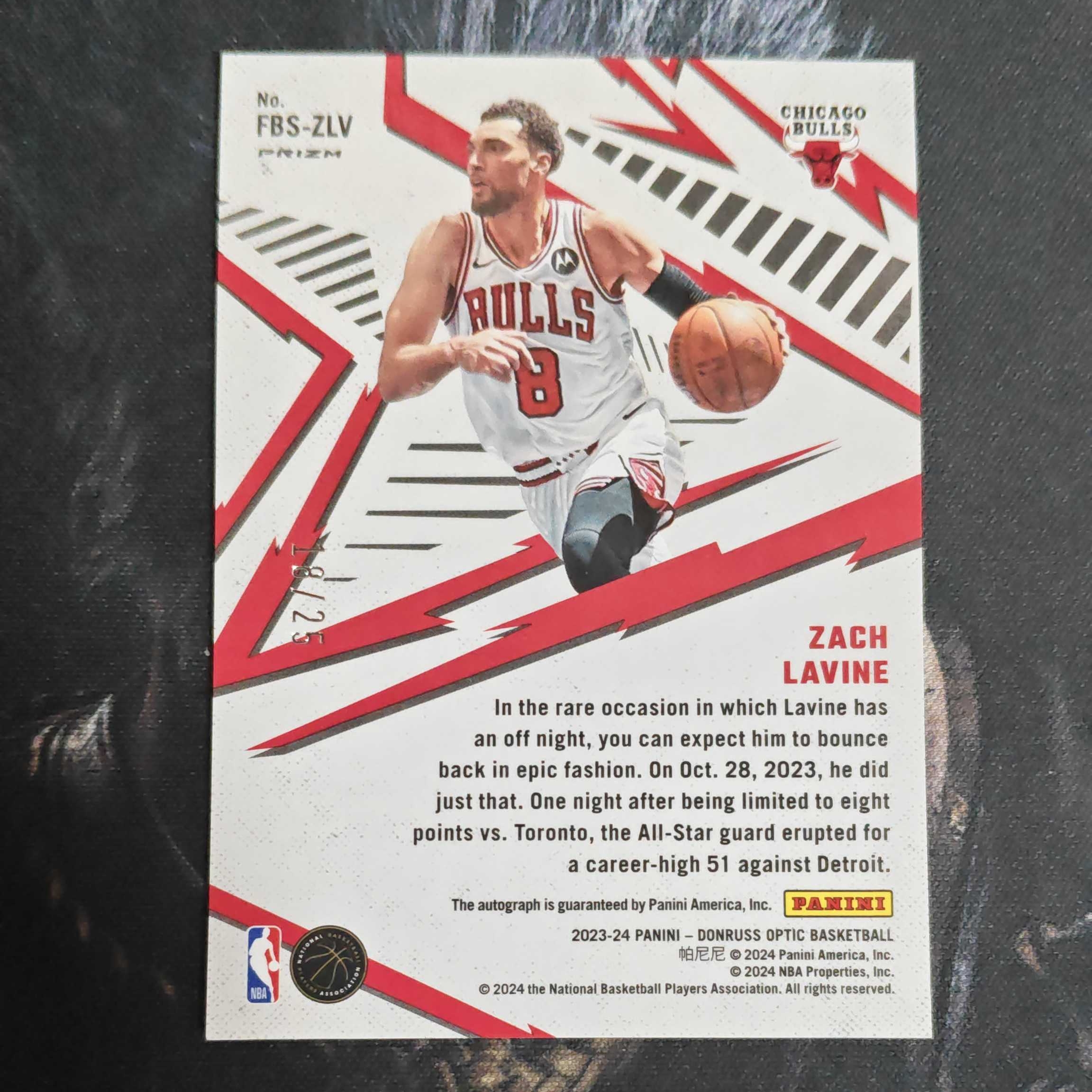 2023-24 Donruss Prizm Zach LaVine 扎克拉文 杜蕾斯 op 快攻 25编 泡泡折 签字 18/25 经典公牛选图 品墨如图