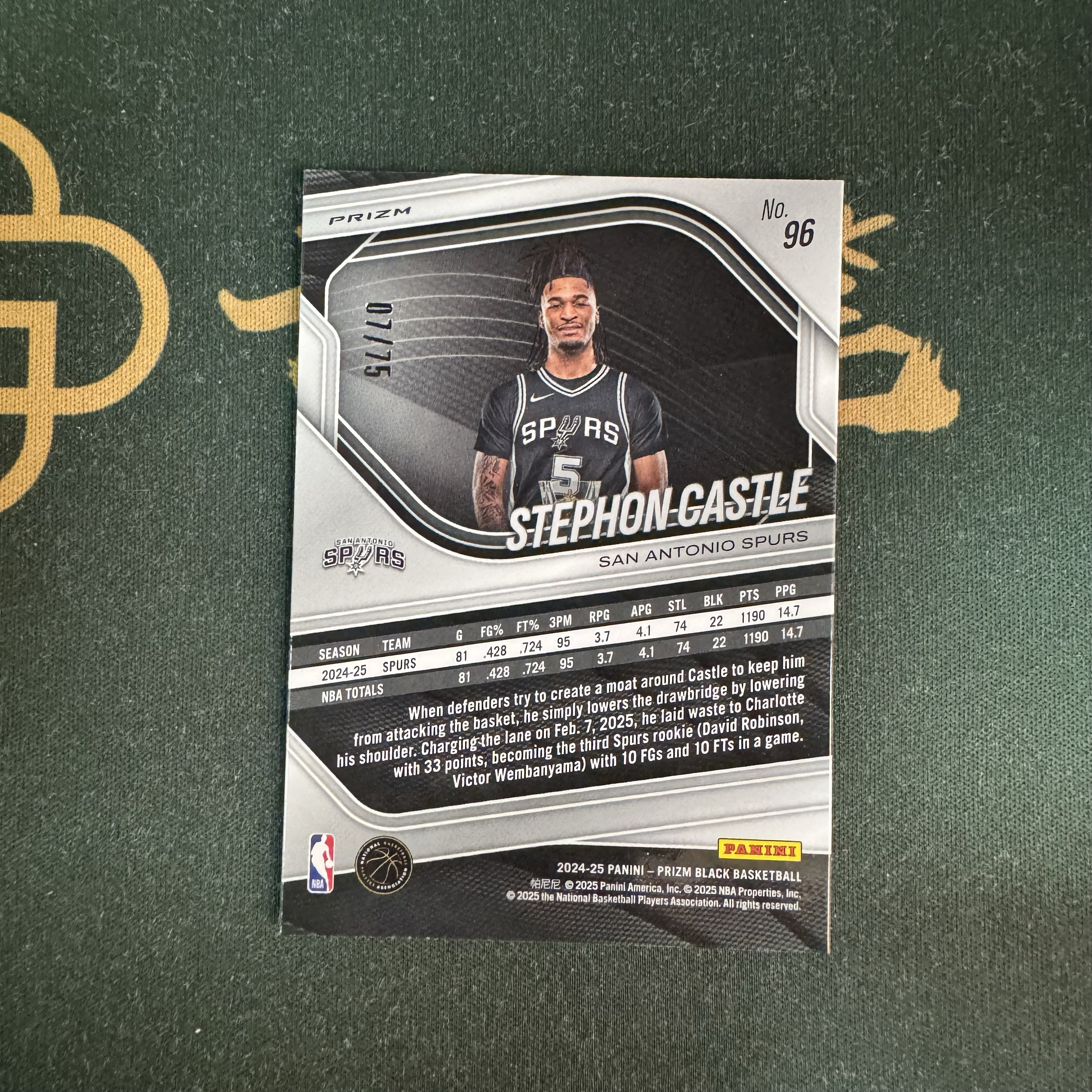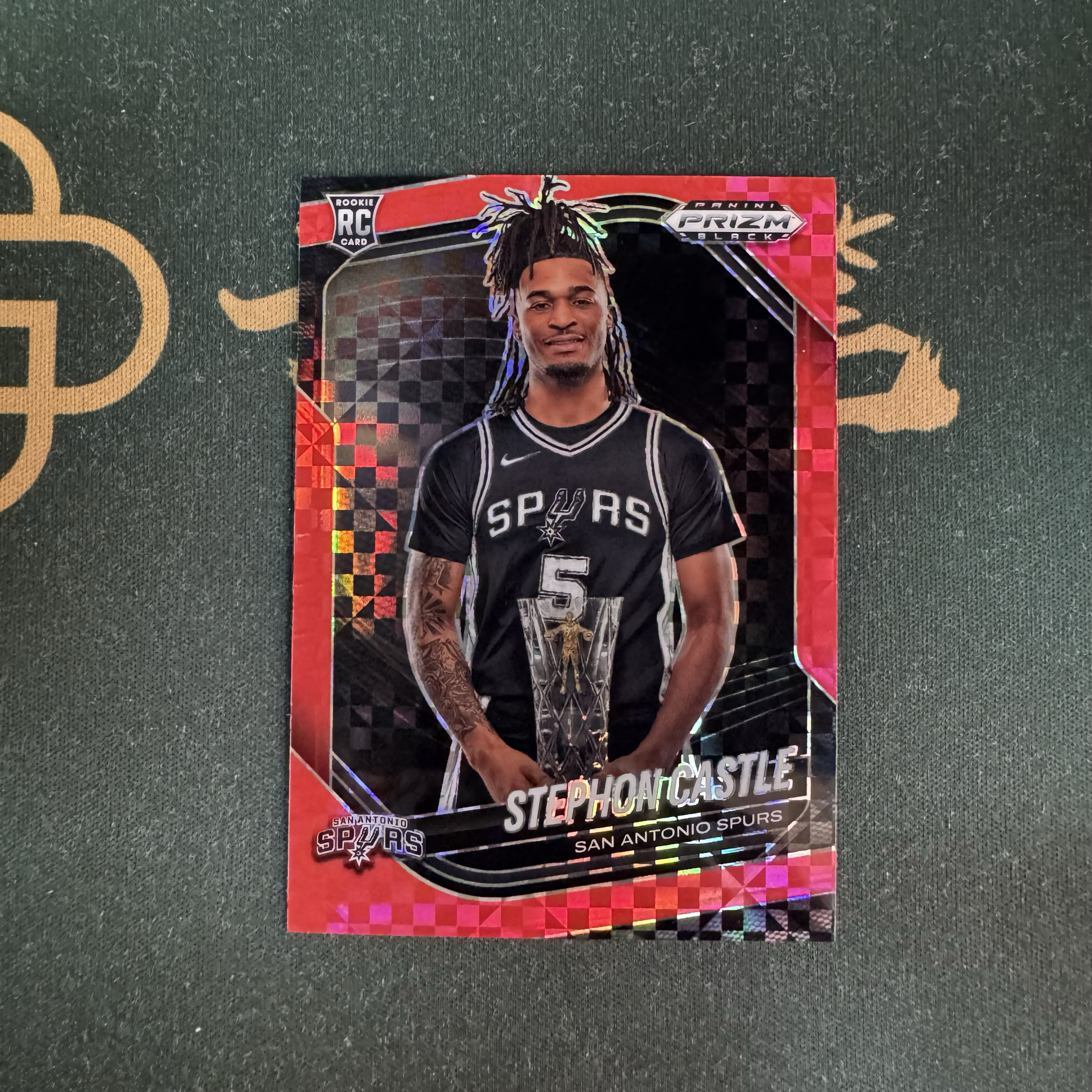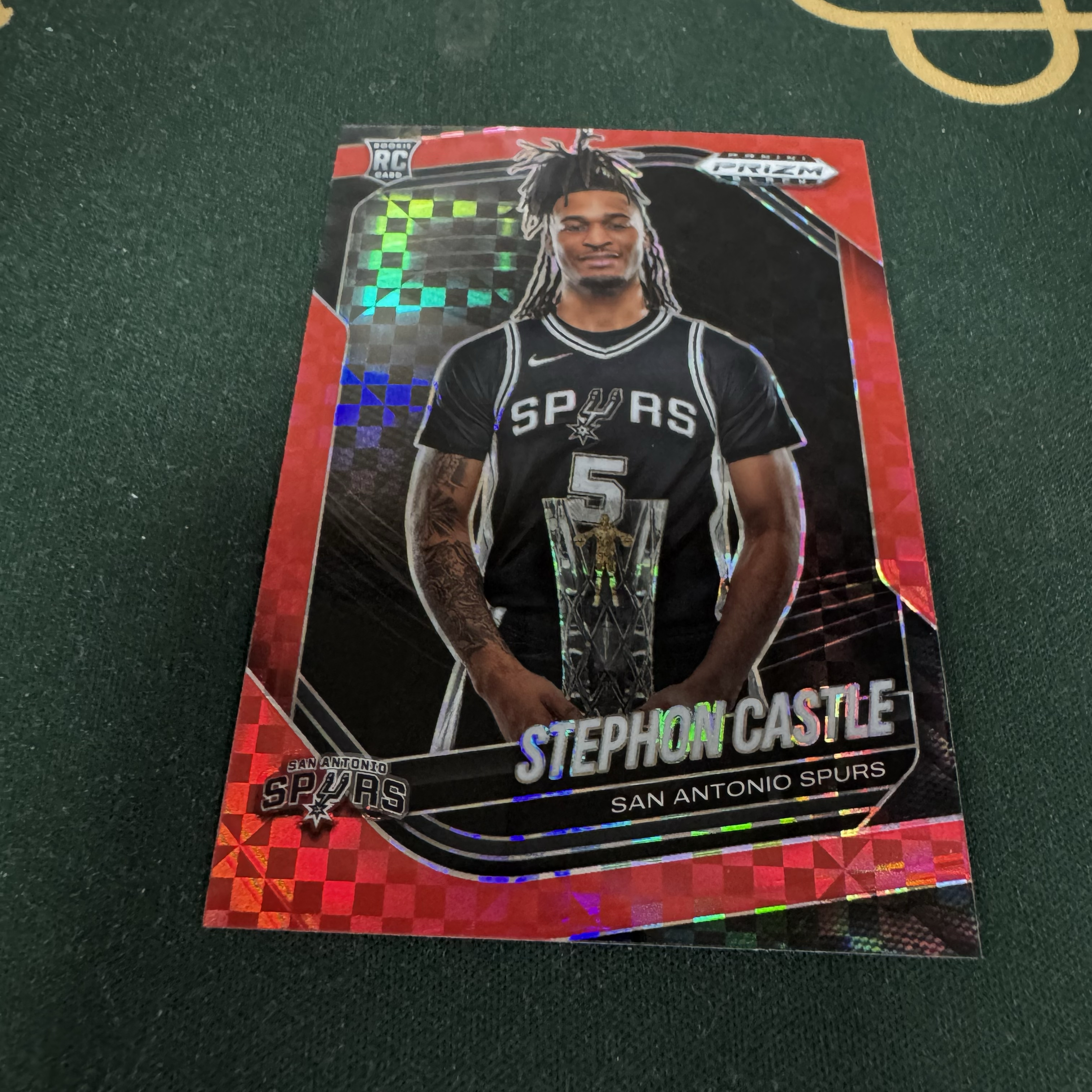 2024-25 Panini Prizm Stephon Castle RC 【十三笔】 帕尼尼 RC 新秀 斯蒂芬 卡斯尔 马刺 75编 红棋盘格折 卡品如图(YY)