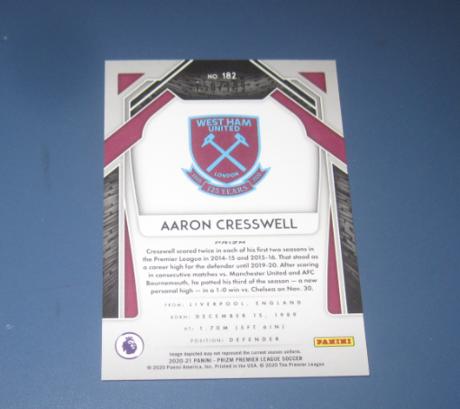 2020-21 Panini Prizm Aaron Cresswell 【凯哥拍卖】帕尼尼 英超 球星卡 折射 限量 199编 西汉姆 克雷斯维尔 极微小瑕疵 品相如图