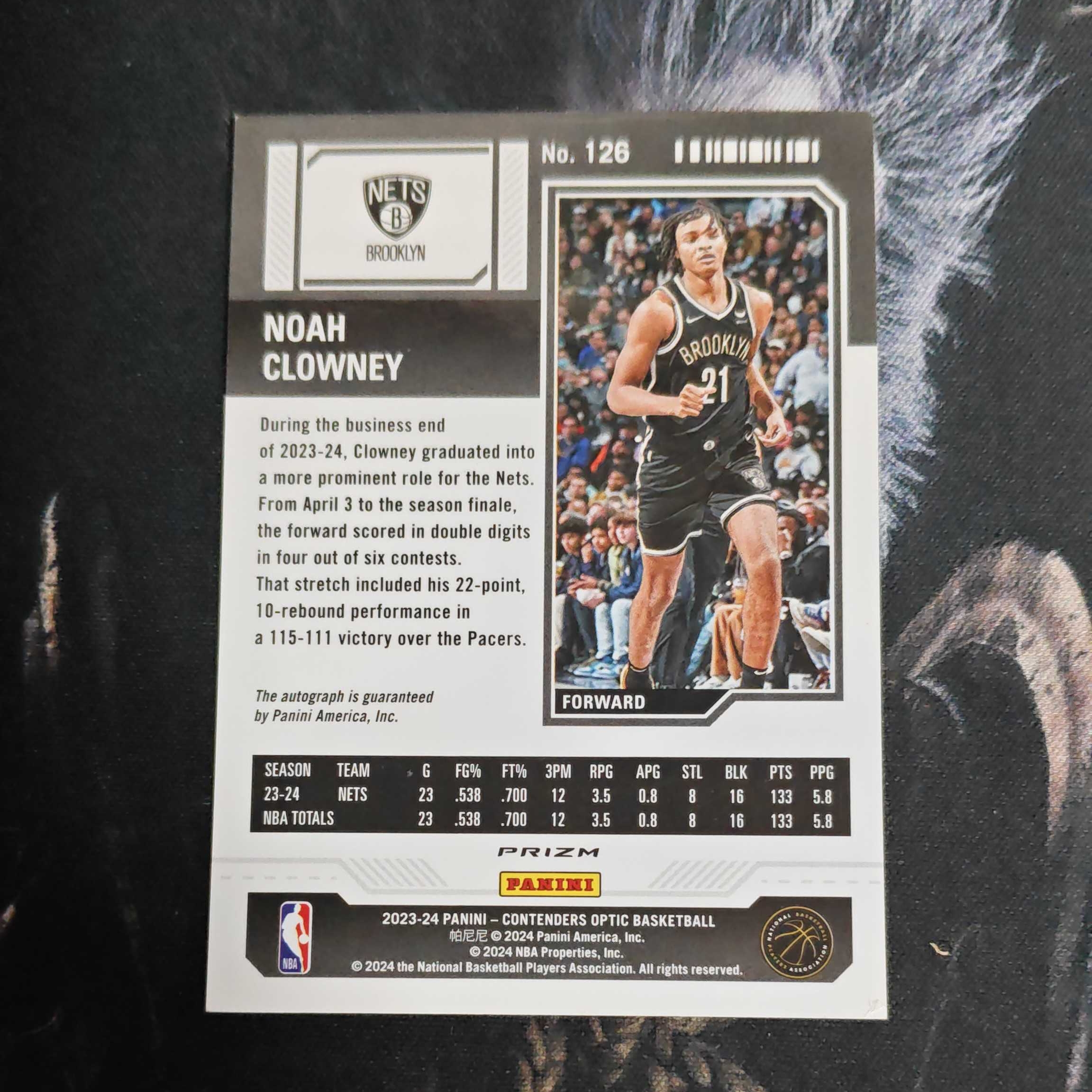 2023-24 Panini Contenders Optic Noah Clowney RC 篮网新秀 诺阿 克罗尼 球票op 银折 卡签 品墨如图 未来可期