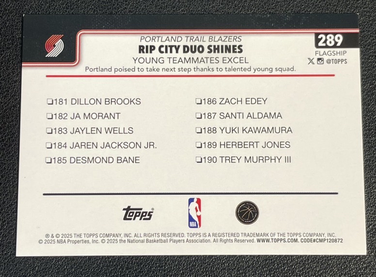 2025 Topps NBA Flagship Donovan Clingan 48 多诺万 克林根 开拓者 双人选图 折射 金折 50编 微瑕如图 卡品如图 辣锅