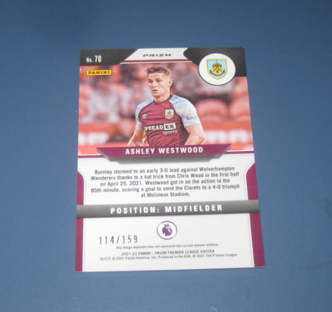 2021-22 Panini Prizm WETSTWOOD 【凯哥拍卖】帕尼尼 英超 球星卡 折射 限量 159编 伯恩利 韦斯特伍德 极微小瑕疵 品相如图