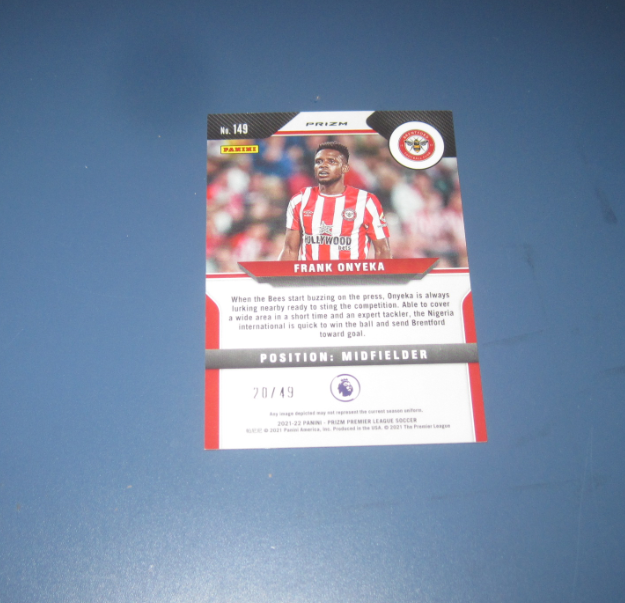 2021-22 Panini Prizm Frank Onyeka 【凯哥拍卖】帕尼尼 英超 球星卡 折射 限量 49编 布伦特福德 昂耶卡 极微小瑕疵 品相如图