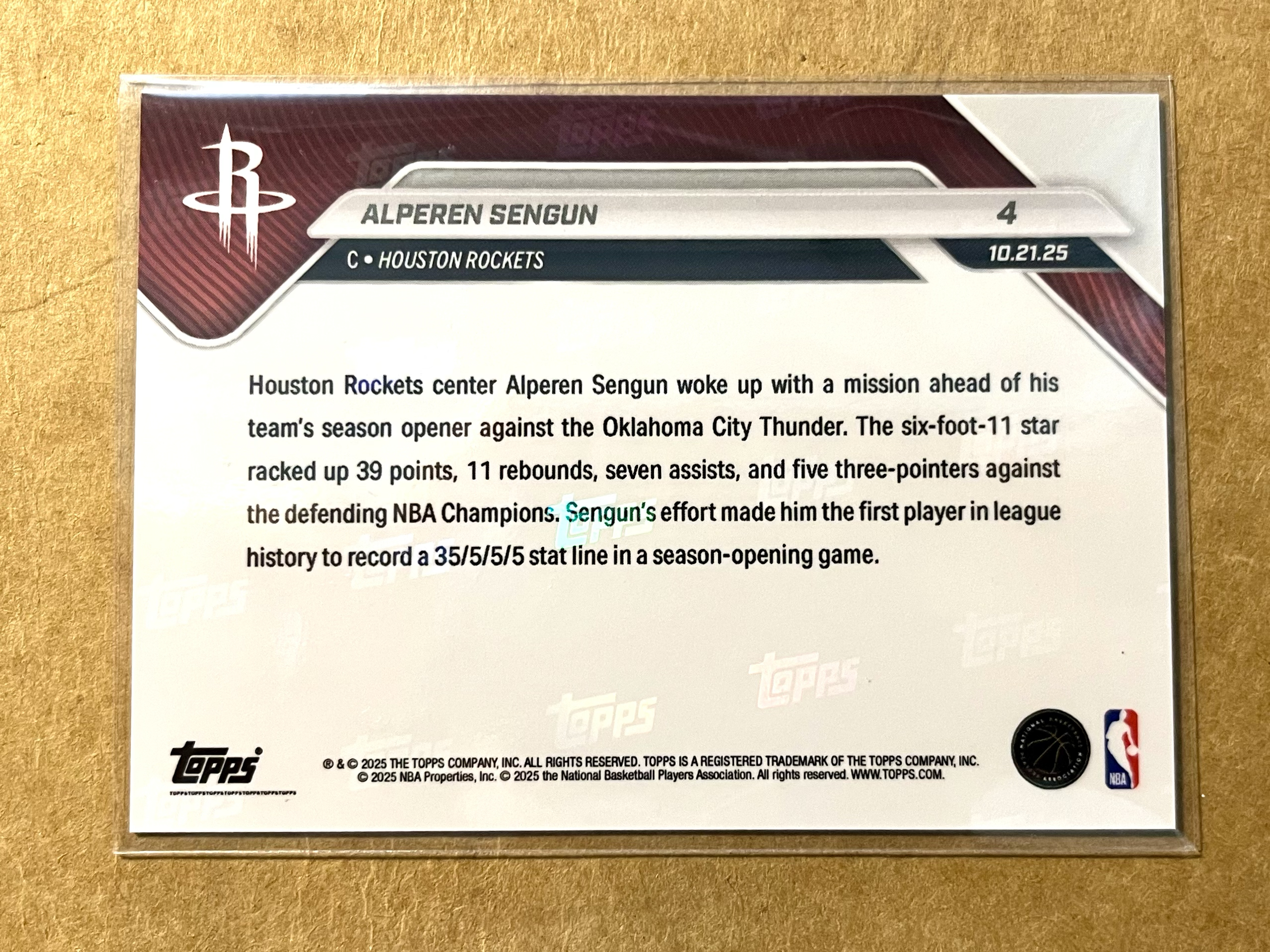 2025 Topps 【蓝矿】 Alperen Sengun 阿尔佩伦·申京 Topps now系列 2025NBA常规赛 火箭 火箭真核!历史首位在赛季首场比赛打出35/5/5/5的炸裂表现!