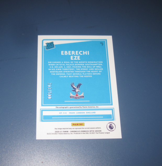 2020-21 Panini Chronicles Eberechi Eze 【凯哥拍卖】帕尼尼 编年史 英超 球星卡 限量300 签字卡 RC 水晶宫 阿森纳 埃泽 极微小瑕疵 品相如图