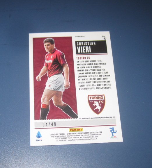 2020-21 Panini Chronicles Christian Vieri 【凯哥拍卖】帕尼尼 编年史 意甲 球星卡 折射 限量49编 签字卡 都灵 意大利 维埃里 极微小瑕疵 品相如图