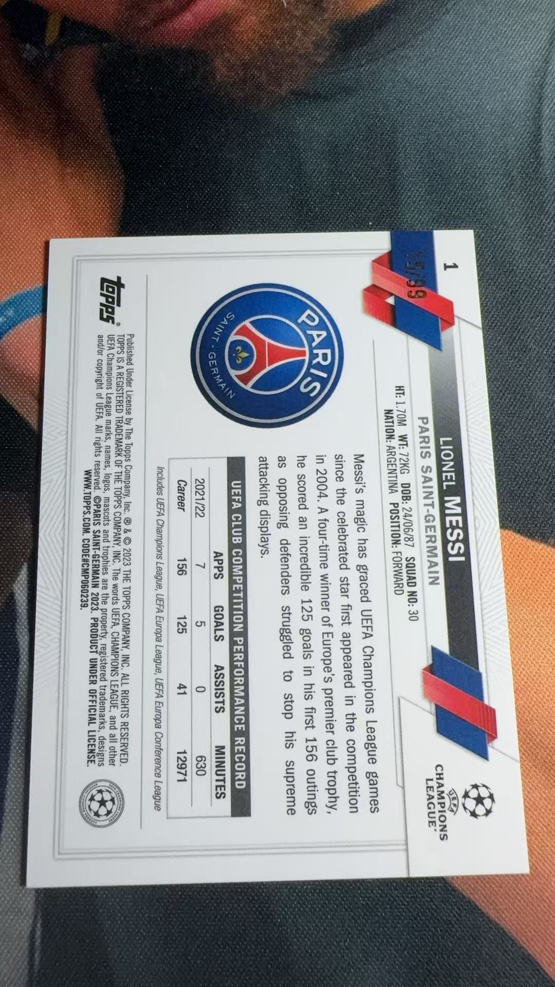 2023 Topps Chrome Lionel Messi 【九轩小师弟】里奥 梅西 梅老板 大巴黎 阿根廷 99编 折射 彩拼折 欧冠 世界杯冠军🏆 投资收藏必备Tuanzi085