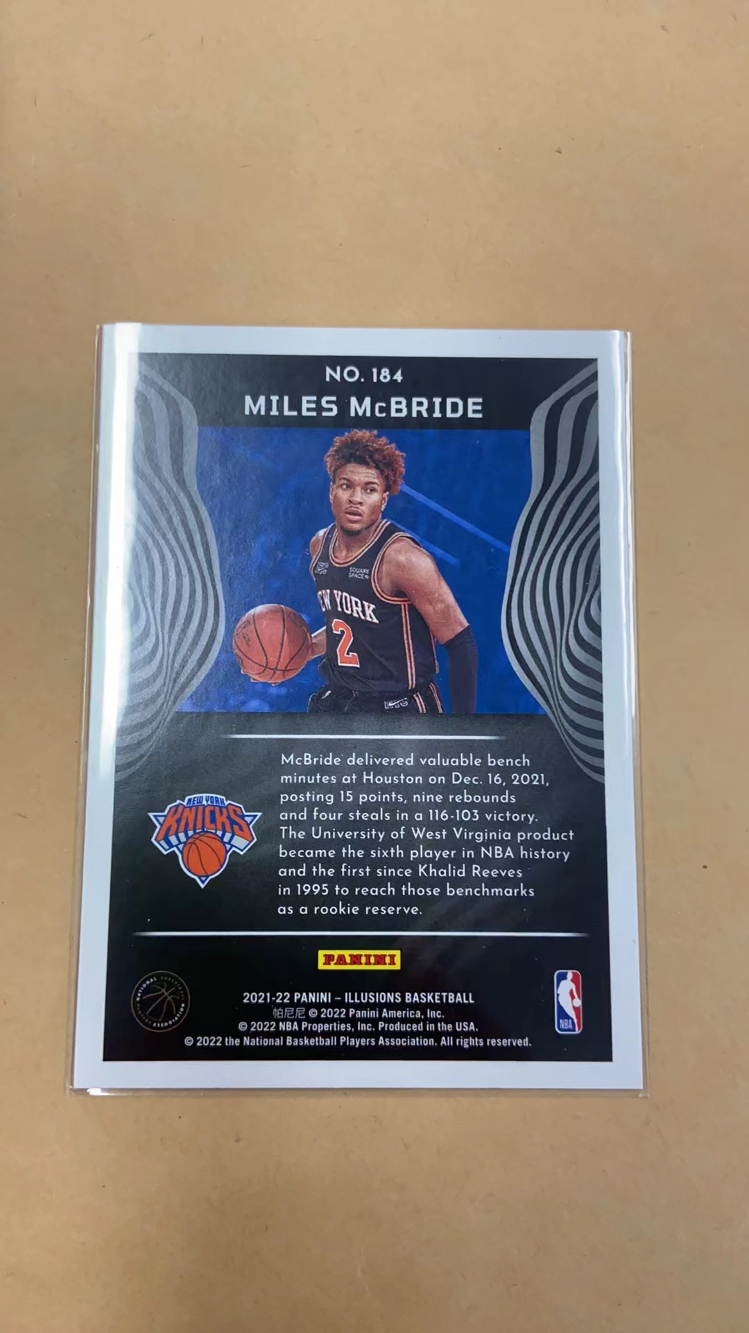 2021-22 Panini Illusions Miles McBride RC 麦克布莱德 新秀 尼克斯 折射 热门球星 硬通货 卡品精美 凑套必备 收藏必备