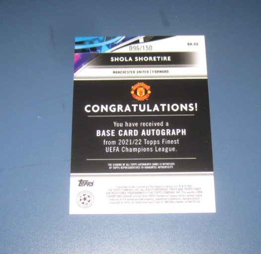 2021-22 Topps Finest Shola Shoretire 【凯哥拍卖】 欧冠 球星卡 签字卡 限量150编 RC 曼联 肖尔泰尔 极微小瑕疵 品相如图