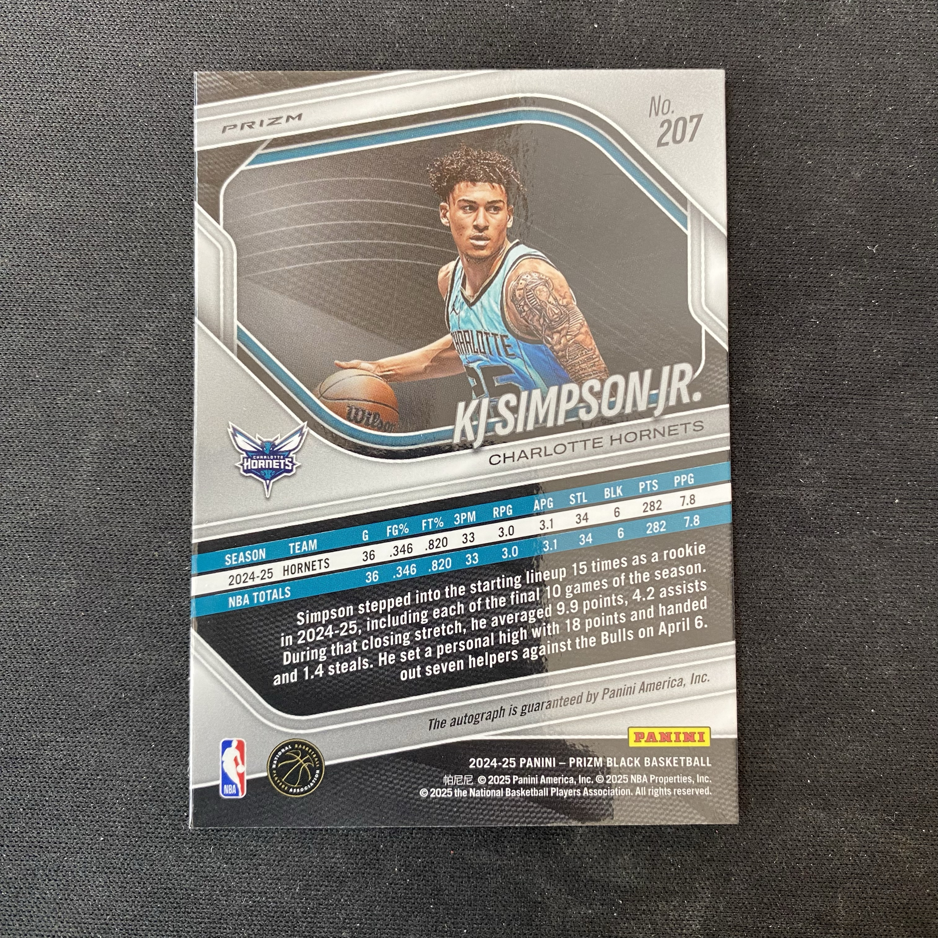 2024-25 Panini prizm black KJ Simpson RC 【星集卡代卖】钱鸭1119 KJ 辛普森 新秀 银折 折射 签字 黄蜂
