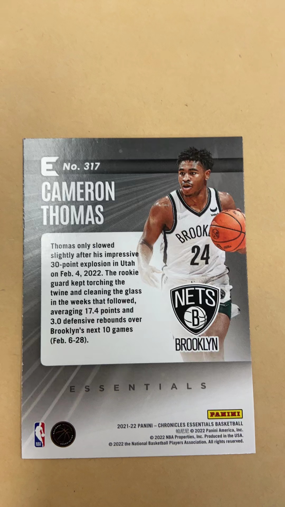 2021-22 Panini Chronicles Cameron Thomas 卡梅隆 托马斯 凤凰 Essential 热门球星 硬通货 卡品精美 凑套必备 收藏必备