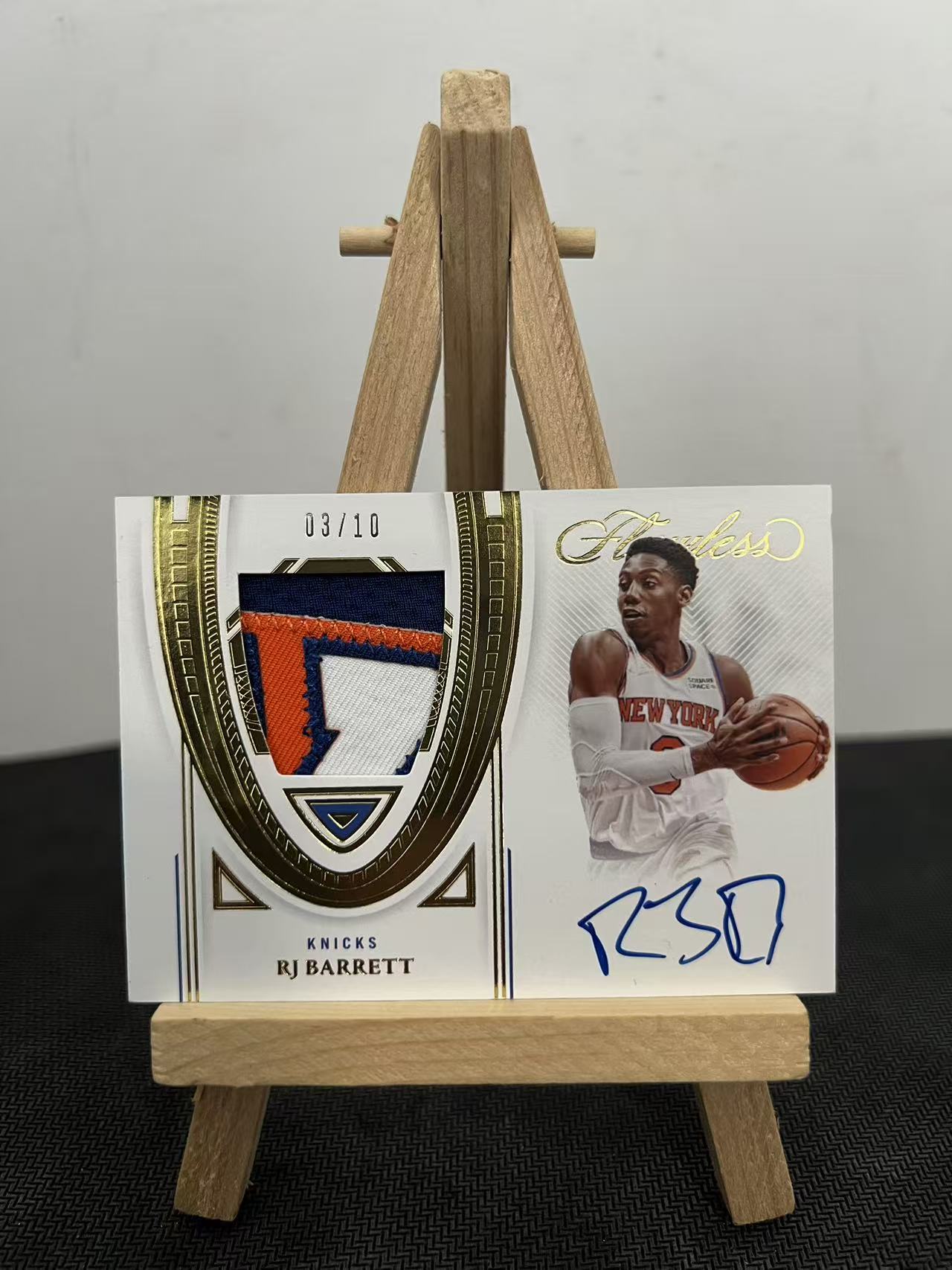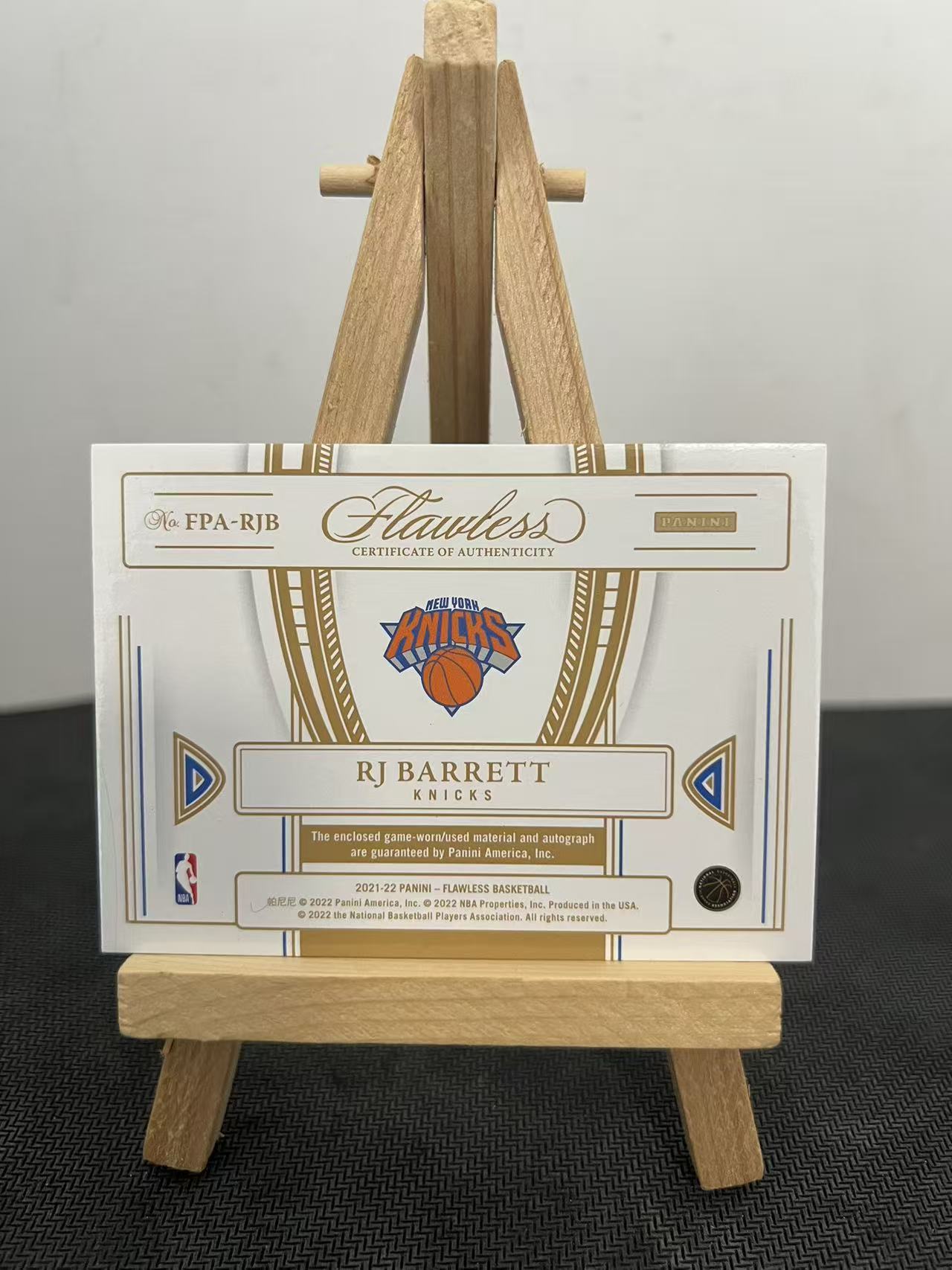 2021-22 Panini Flawless R.J. Barrett 【FV拍卖】RJB 巴雷特 手提FPA PA 签字 卡签 3/10编 金平行 同顺位编 暴力落场物料 瑕疵如图 放纵