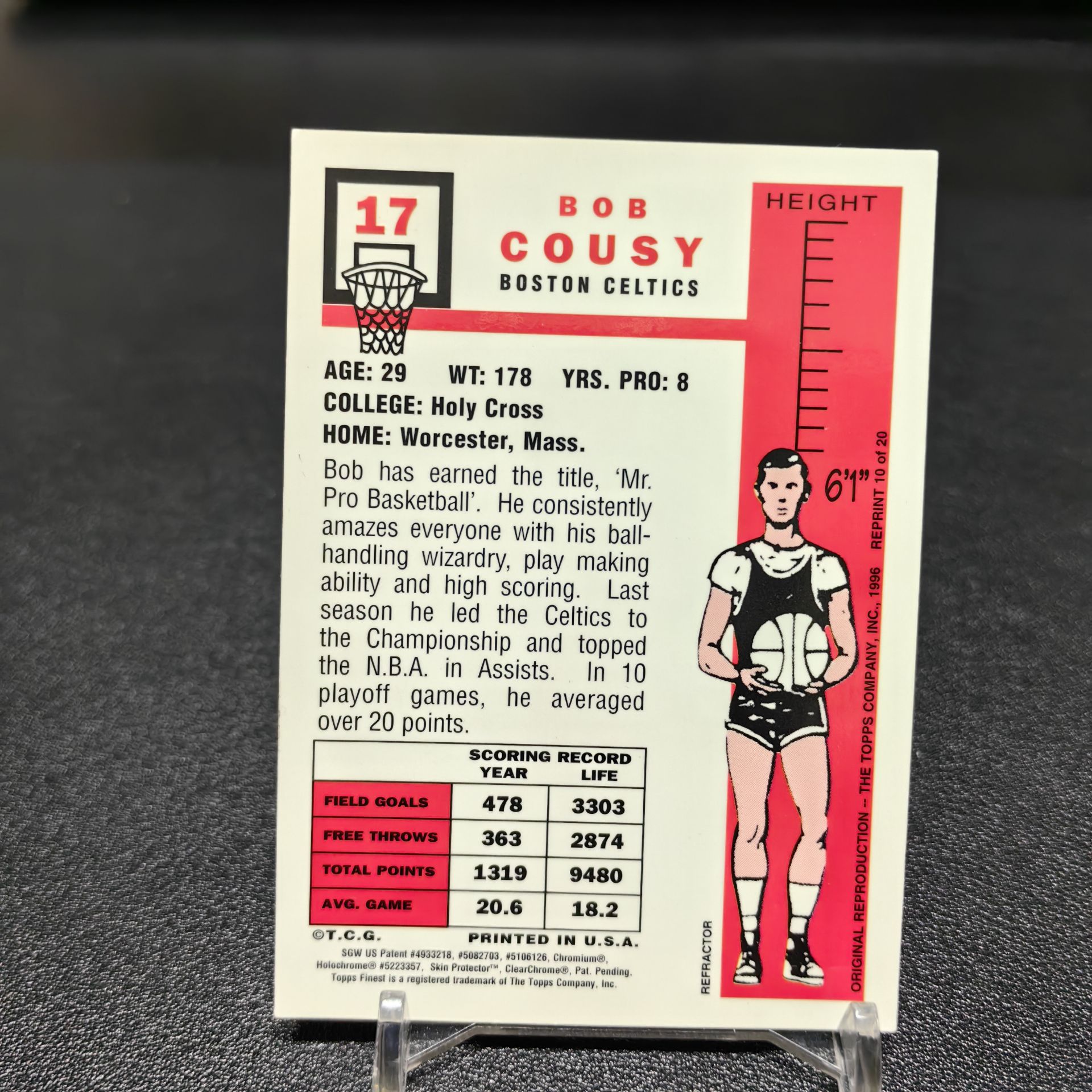 【浩行拍卖 截标预付82%】1996 topps bob cousy 凯尔特人 鲍勃 库西 银折 折射 经典老卡 专收必备 瑕疵看图「雾粒」1114C02龘
