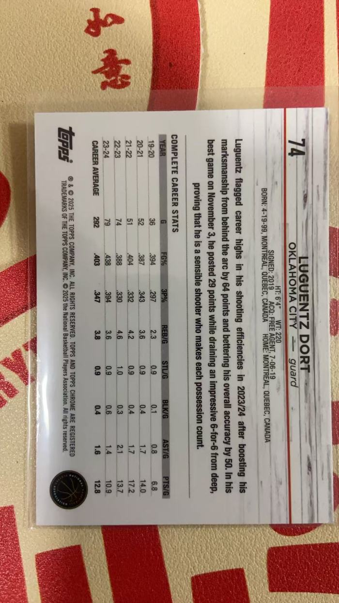 2024-25 Topps Chrome 吕冈茨 多尔特 Luguentz Dort 收藏必备 凑套必备