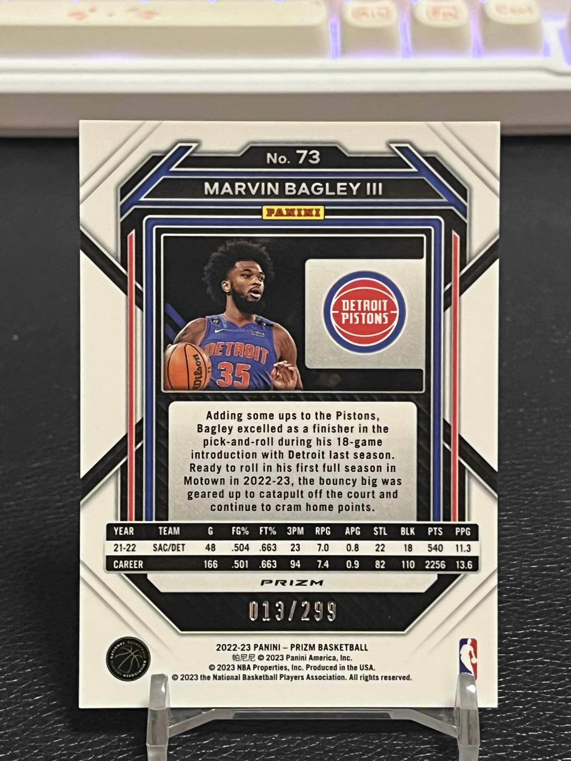 【浩行拍卖 截标预付82%】2022-23 panini prizm marvin bagley iii 活塞 马文 巴格利三世 红折 折射 13/299编 专收必备「阁调」1114F04祺