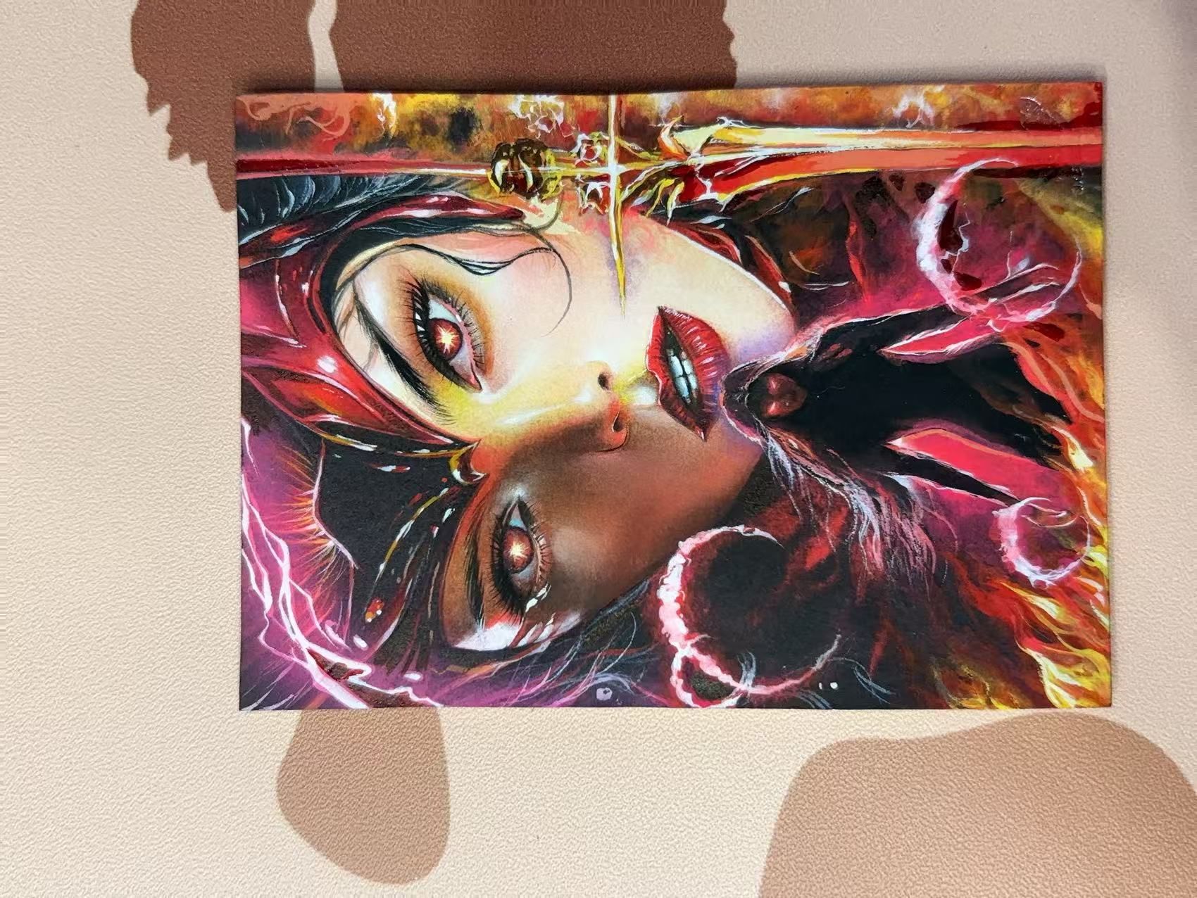 2025 【花糕HIT手绘拍卖】 工作室见卡背 1/1 画师亲签 画师:战锤 漫威 绯红女巫 精品手绘卡 画师亲签 签字 每一张都是画师手工绘制 手工制品 默认瑕疵 放大图片看细节