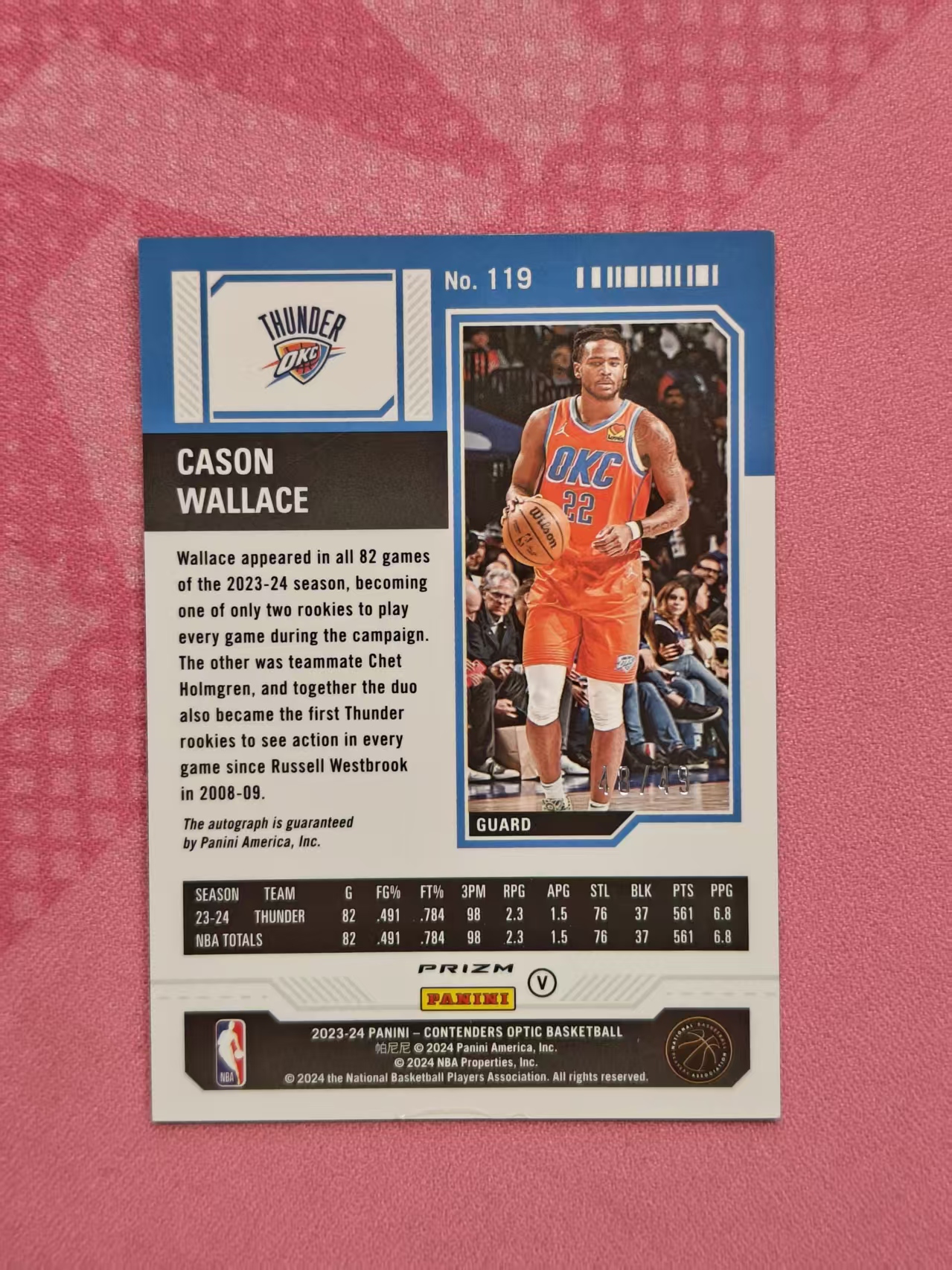 2024 Panini Optic Cason Wallace RC 雷霆 卡森华莱士 49编蓝折新秀rc签字 已经绝版 专收必备 mljc