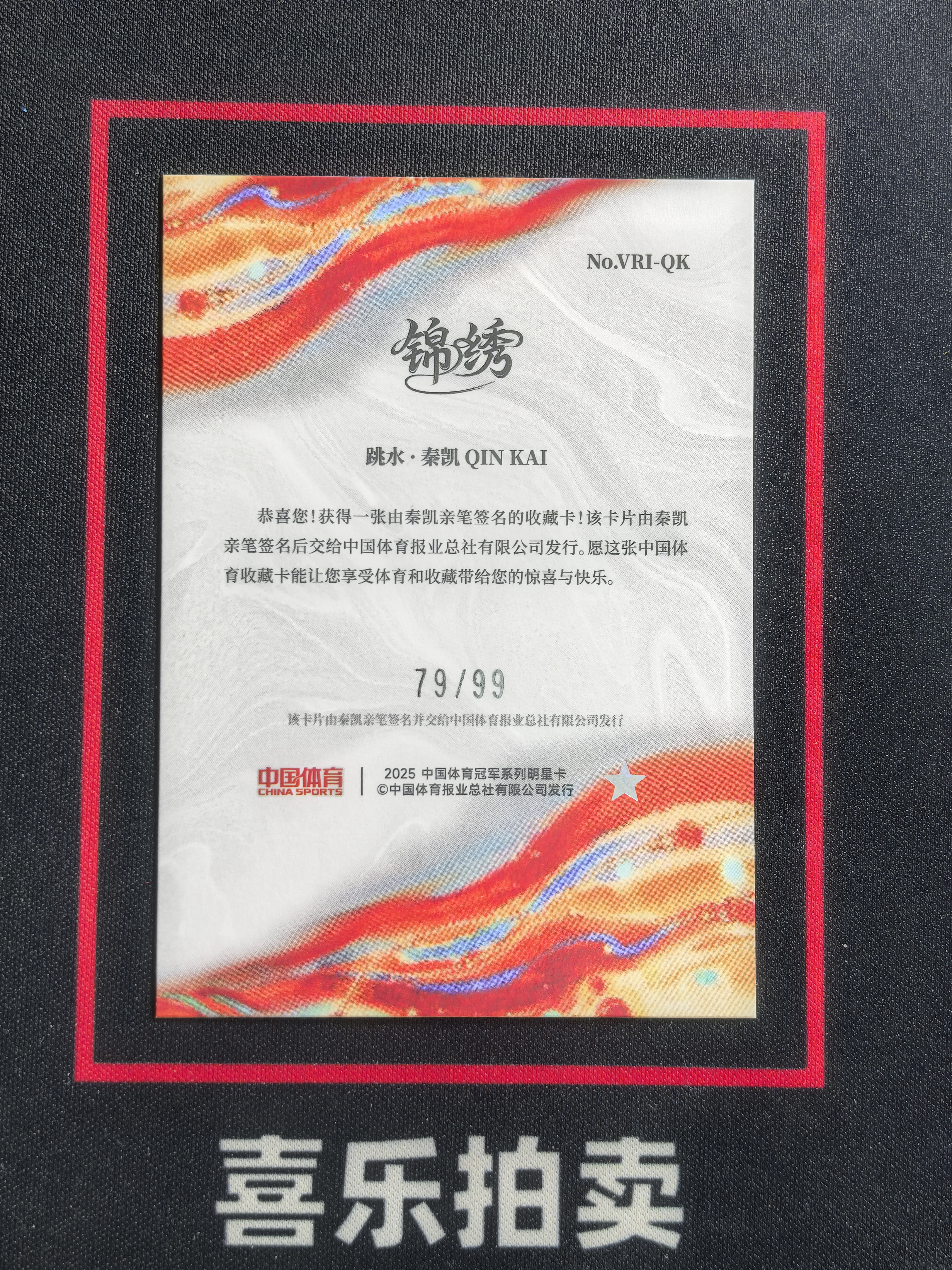2025 奇卡 QICA 中国体育 锦绣 秦凯 跳水 79/99编 签字 签名 Veteran Ink 铭刻签字 银平行 折射 奥运会冠军 收藏必备 卡品如图 扎扎