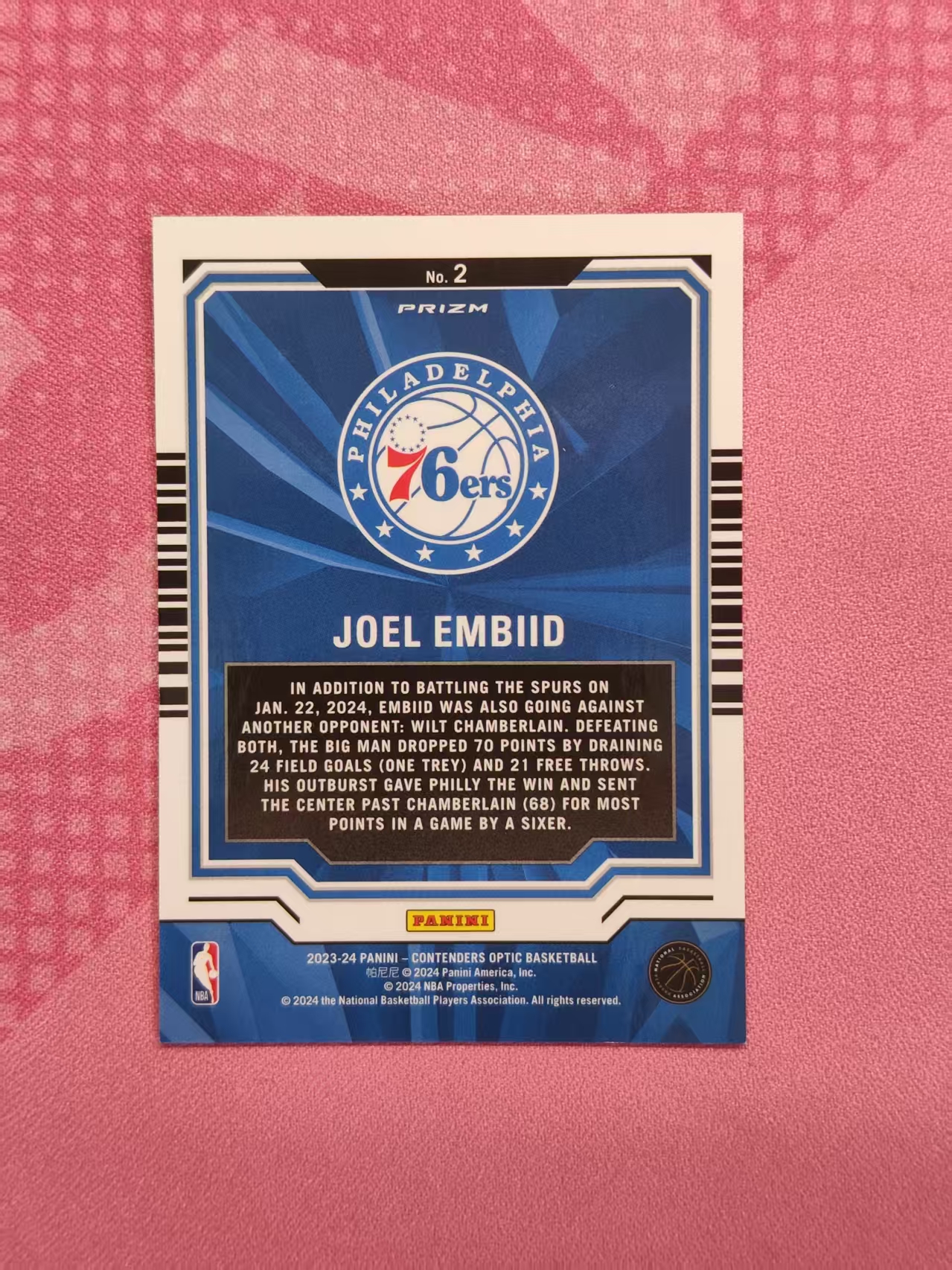 2024 Panini Optic Joel Embiid 乔尔恩比德 70分球员得分记录特卡 近期大热球员 已经绝版 专收必备 mljc