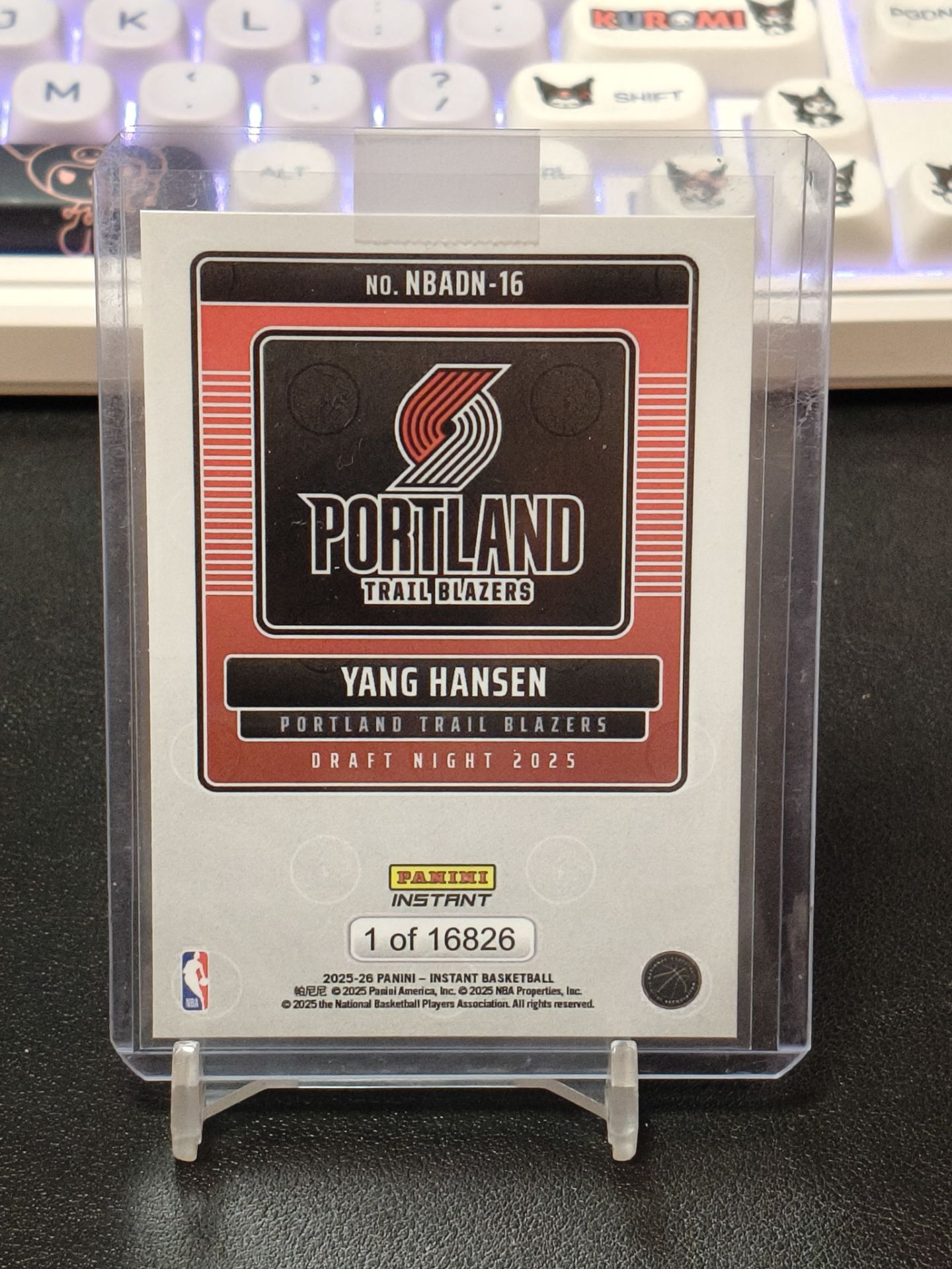 【浩行拍卖 截标预付82%】2025-26 panini instant yang hansen 开拓者 杨瀚森 rc 新秀 定妆照 1 of 16826 专收必备「阁调」1114G02兿