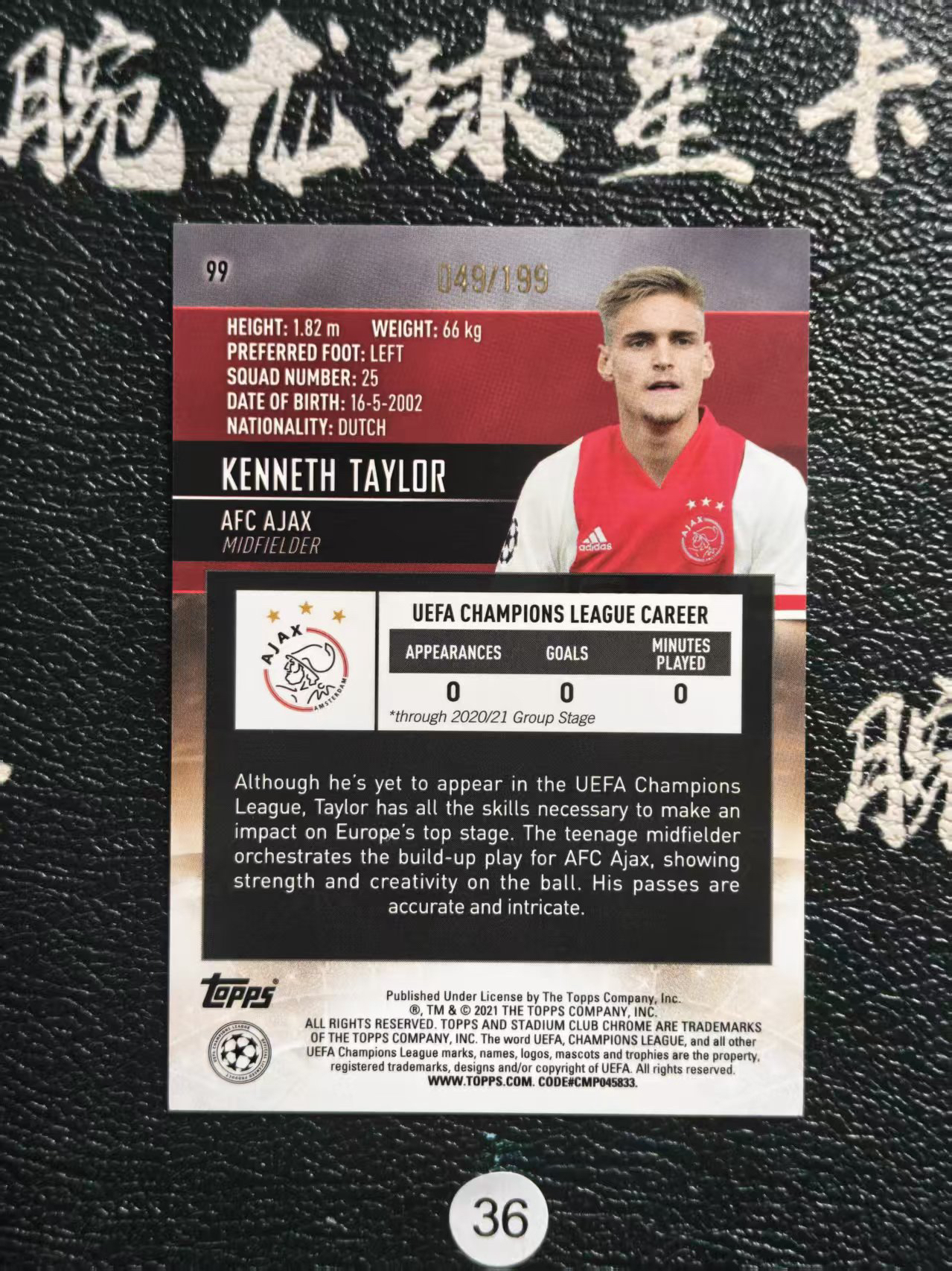 2021 【腕龙拍卖 接代卖】 腕龙夏总AN3 Topps Stadium Club 欧冠 竞技场 元年 肯尼斯 泰勒 阿贾克斯 RC新秀 199编 KENNETH TAYLOR 卡品如图 收藏必备