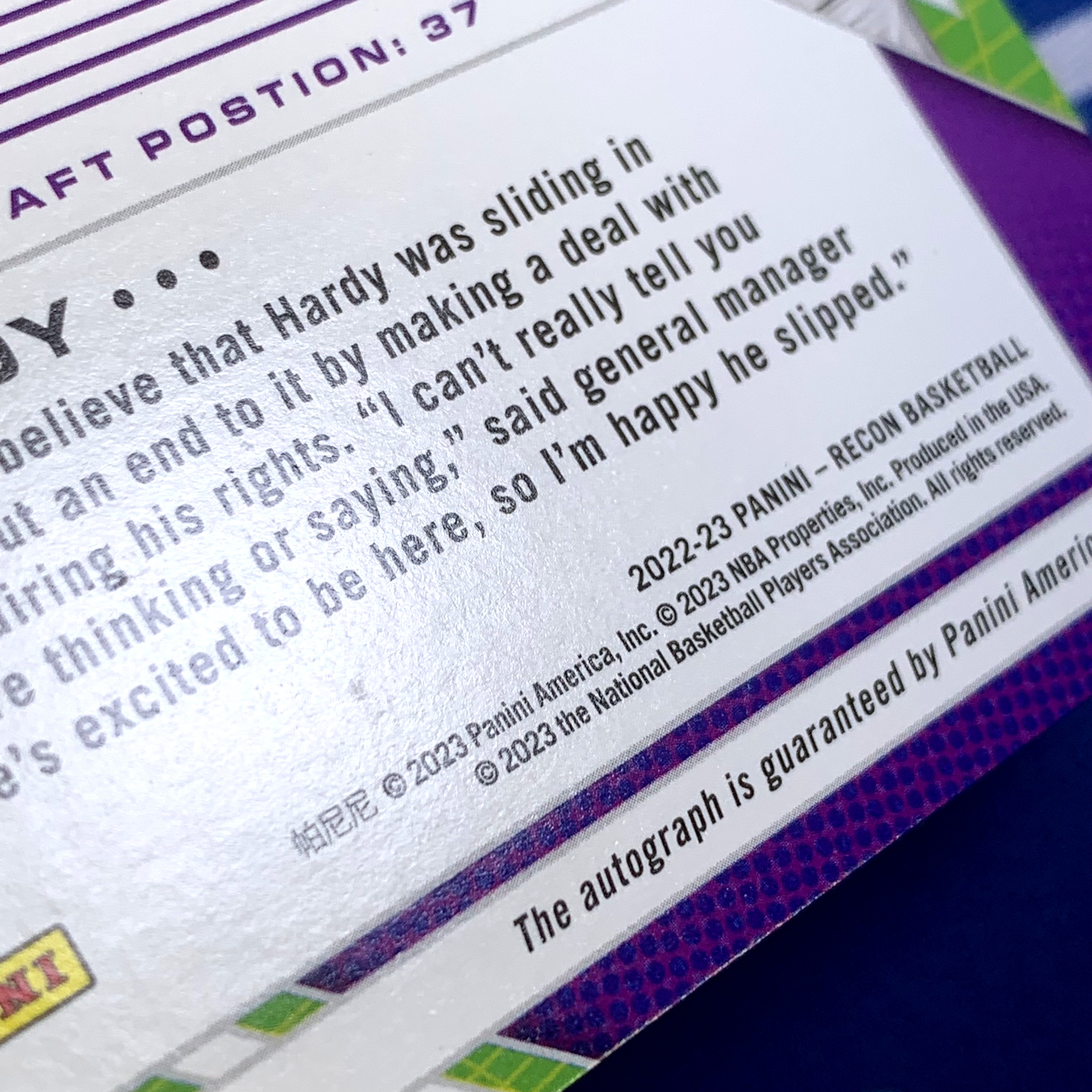 2022-23 Panini Recon Jaden Hardy 【海宝】独行侠 新秀RC 杰登哈迪 15编 选秀夜 签字卡 卡签 印角见图 未来可期 凑套 收藏必备【PYD】