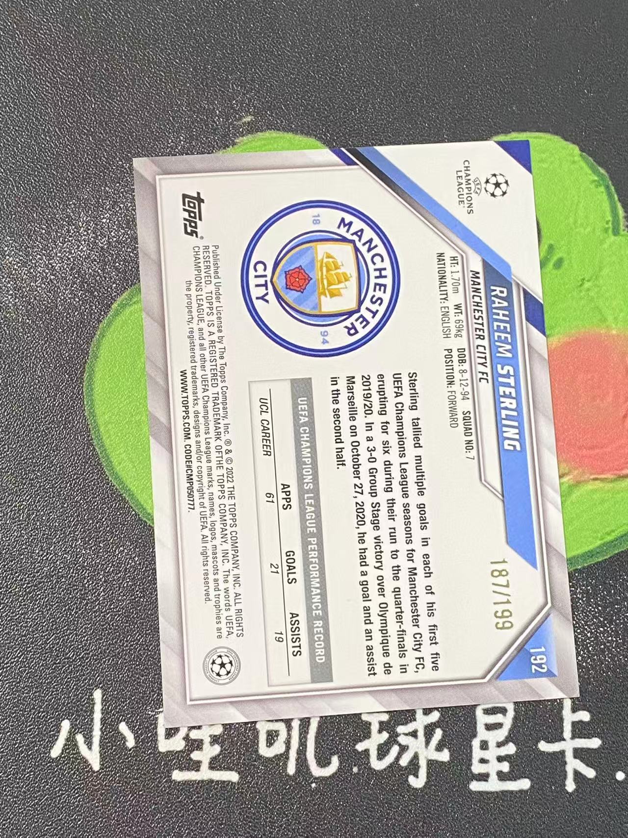 2020 Topps Topps Raheem Sterling 欧战 UCC 曼城 斯特林 199编 英格兰 微瑕如图【ZYP代拍】SO1