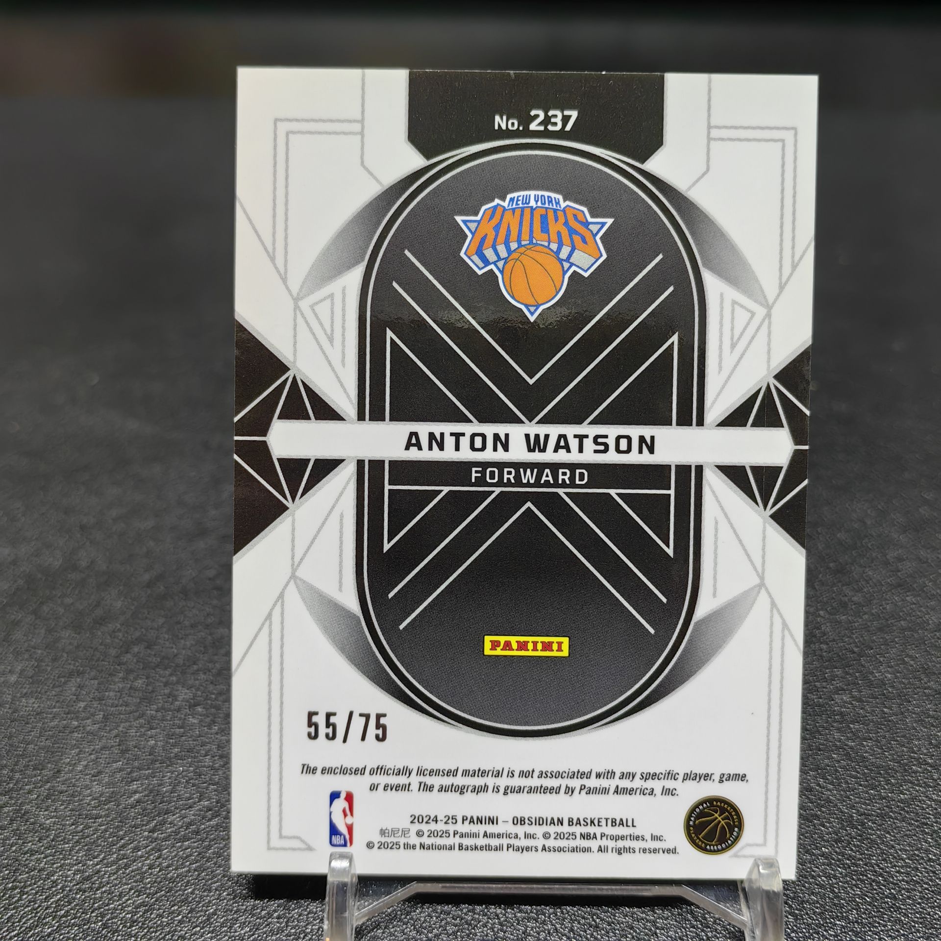 【浩行拍卖 截标预付82%】2024-25 panini obsidian anton watson 黑曜石 尼克斯 安东 沃特森 RC 新秀 签字 球衣 物料 RJA 紫折 折射 55/75编 专收必备 瑕疵看图「照料」1114C04龘