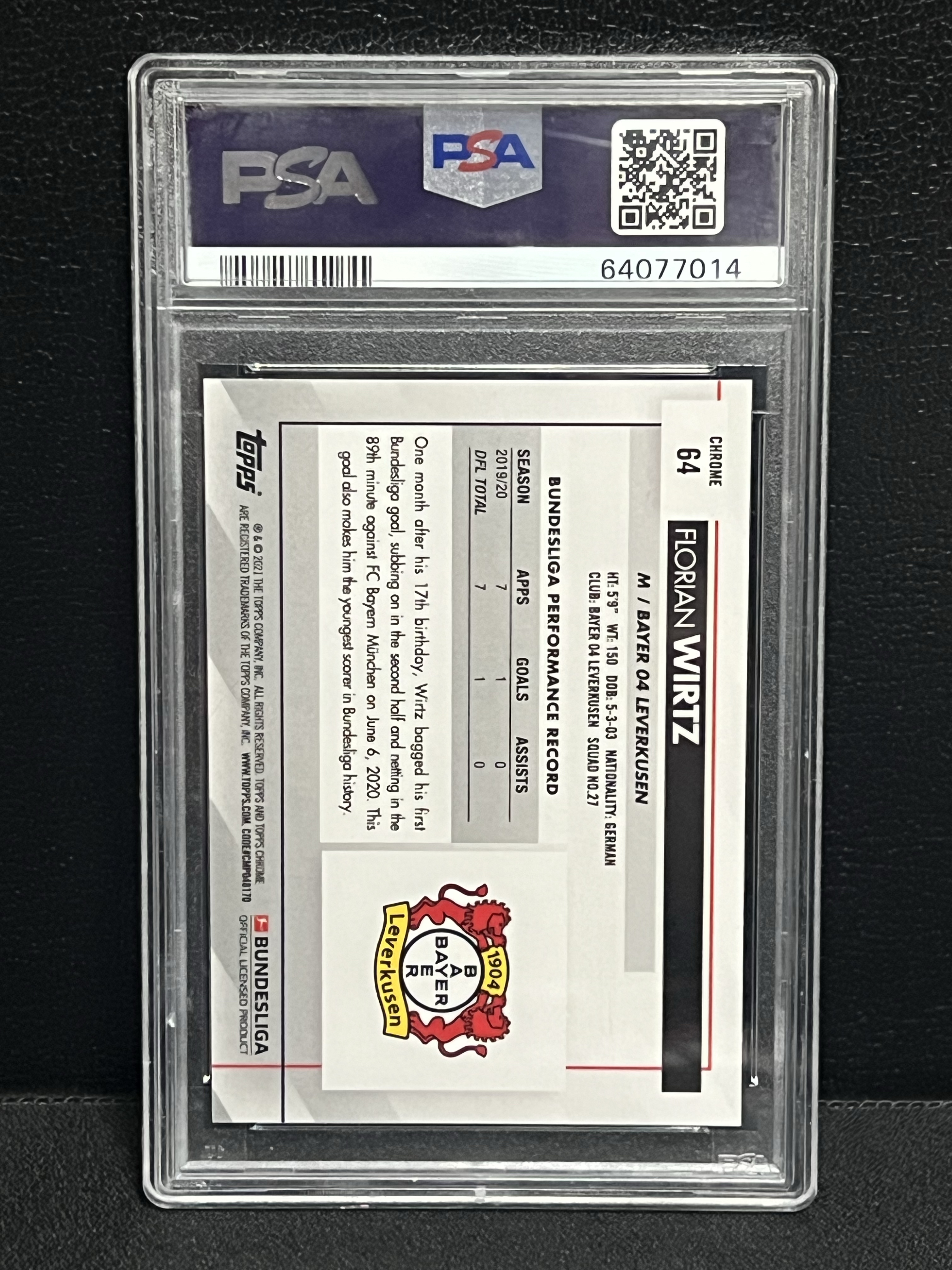 2020-21 Topps Chrome Florian Wirtz 【北伦敦拍卖】 维尔茨 新秀年 德甲TC蓝宝石 蓝碎冰 药厂 利物浦 德国🇩🇪PSA9 清