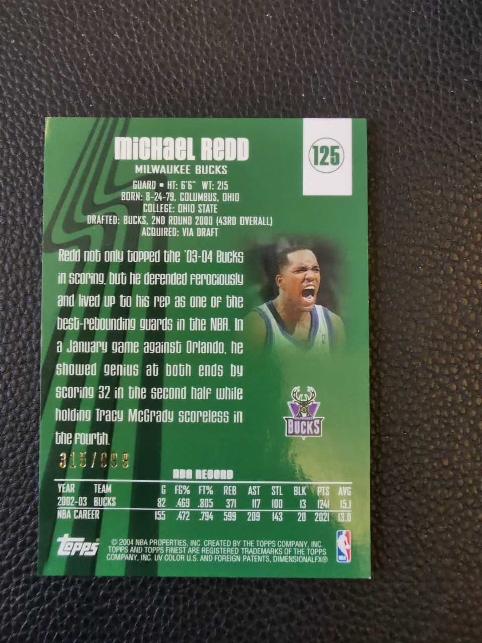 【金矿拍卖】2004 topps finest authentic 雄鹿 迈克尔里德 Michael redd 落场球衣切割 315/999编 超强得分能力 易建联老大哥 小天