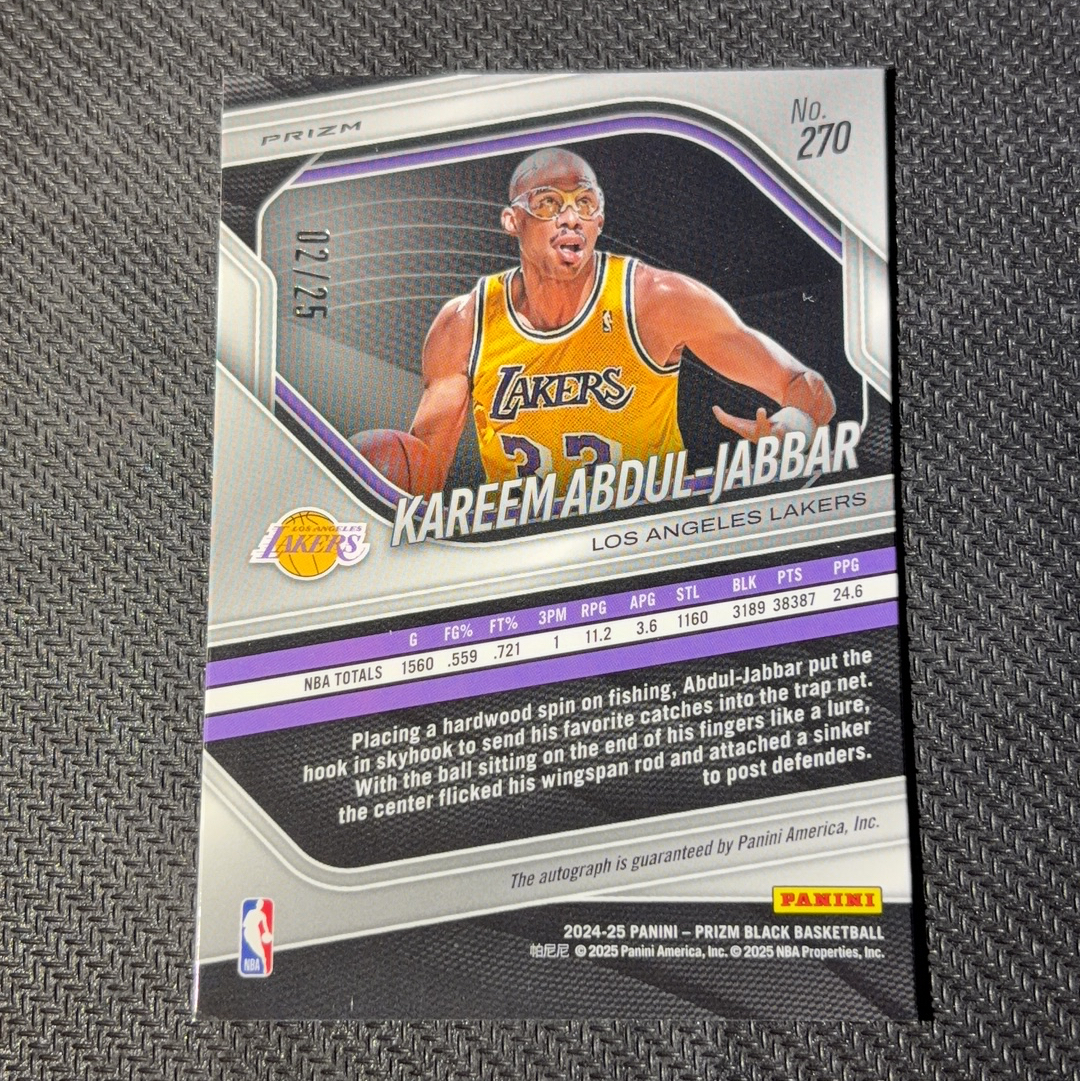 2024-25 Panini Prizm Kareem Abdul-Jabbar 湖人 卡里姆 贾巴尔 天钩 pz base 蓝shimmer折 折射 蓝雨点折 签字 25编 带编 实卡精美 专收必备