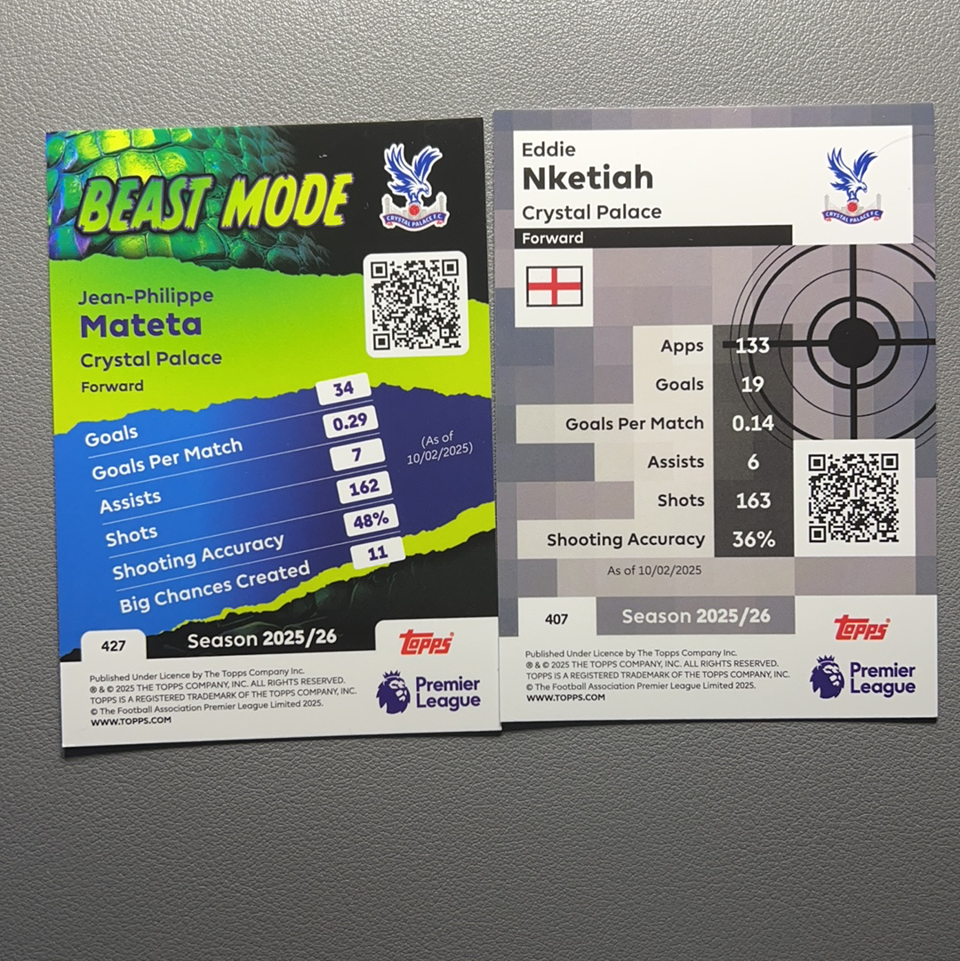 2025-26 Topps Premier League 水晶宫 Mateta 马特塔 Beast Mode 野兽模式特卡 Nketiah 恩凯迪亚 精准大师特卡 2张lot打包 英超 不保卡品