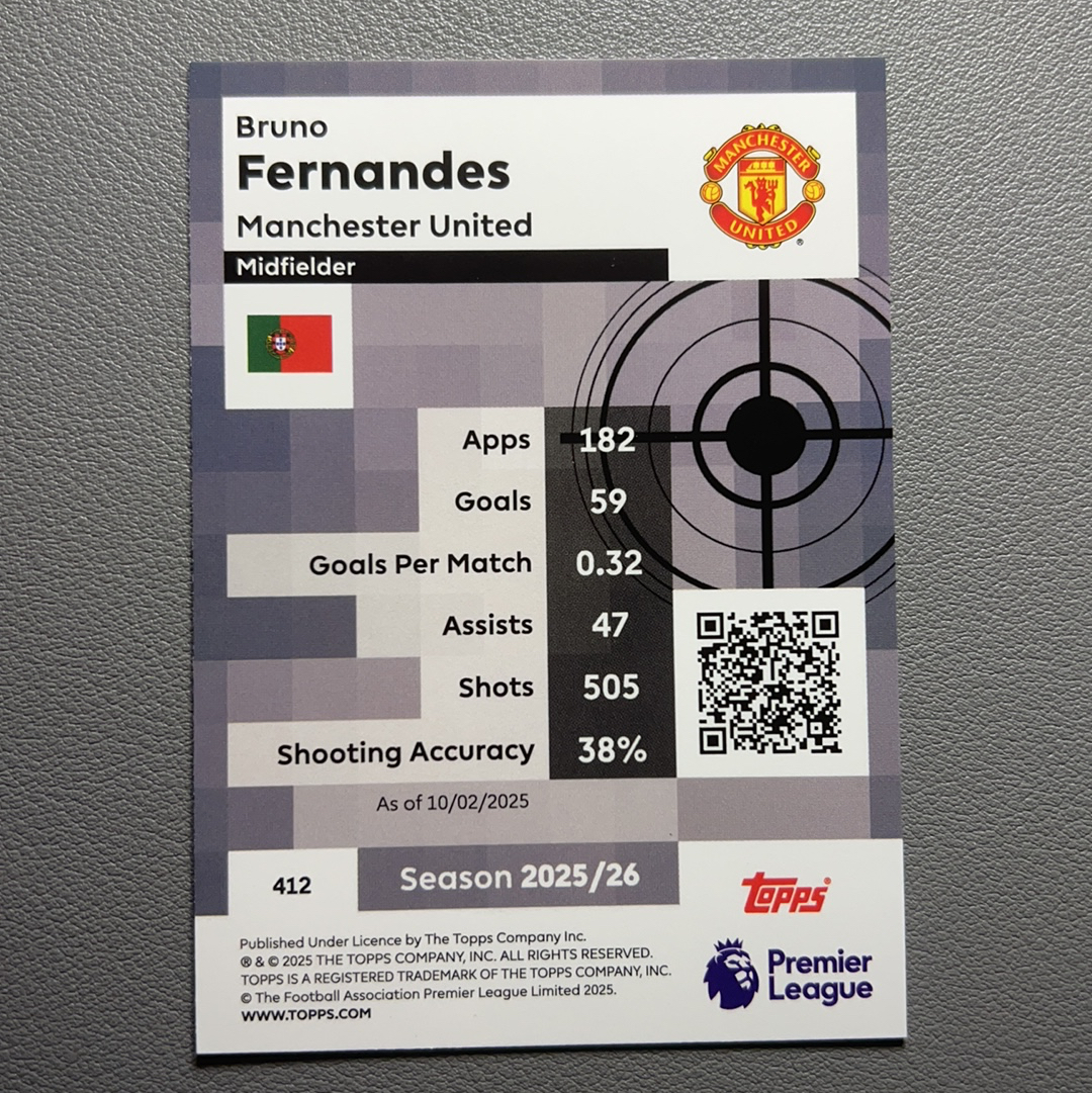 2025-26 Topps 英超 曼联 Bruno Fernandes B费 葡萄牙 Pro Precision 大师精准特卡 银折 折射 实卡精美 卡品如图