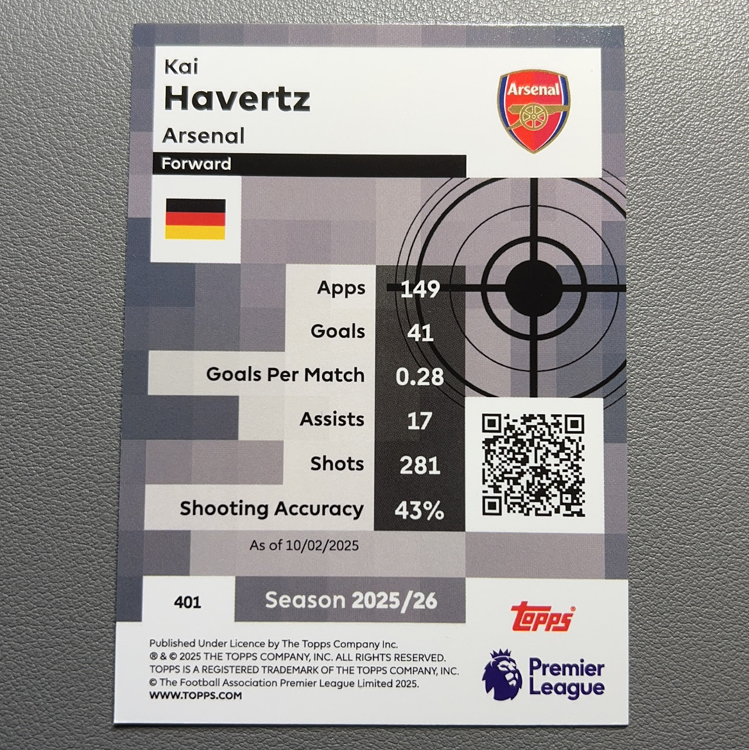 2025-26 Topps 英超 德国 阿森纳 Kai Havertz 凯 哈弗茨 Pro Precision 大师精准特卡 银折 折射 实卡精美 卡品如图
