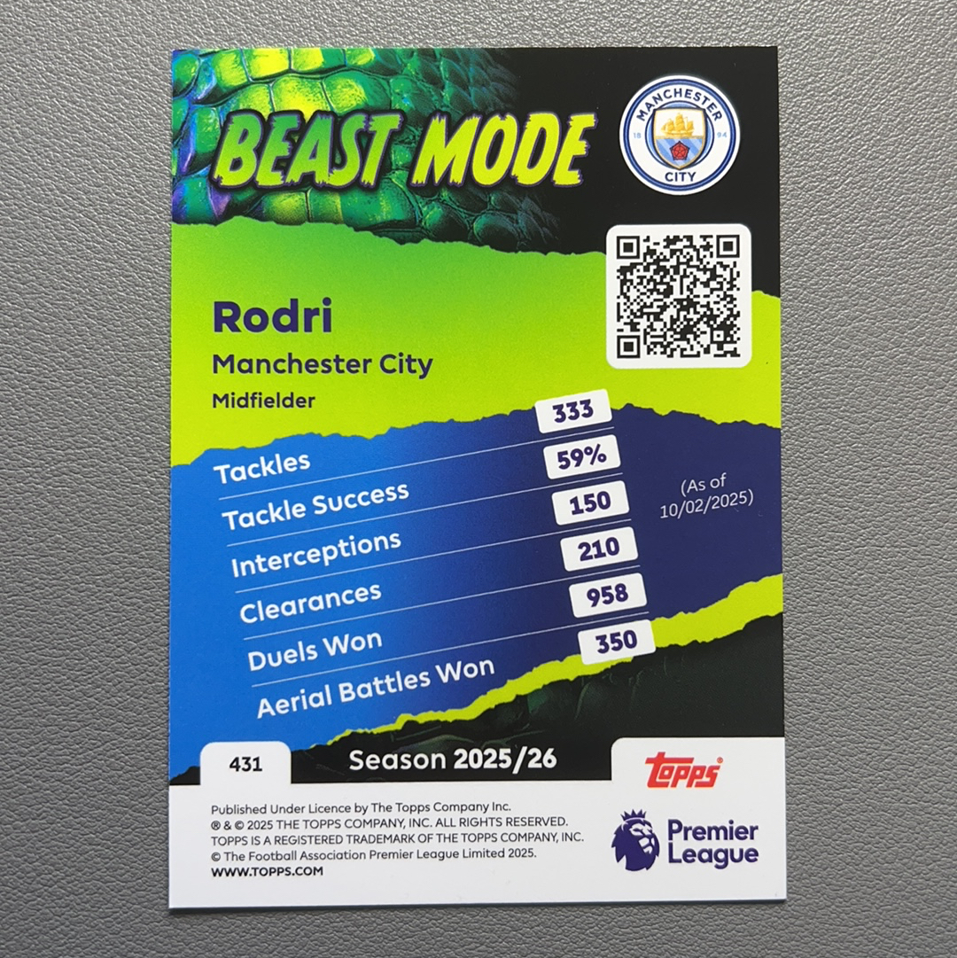 2025-26 Topps Premier League Rodri 罗德里 曼城 西班牙 Beast Mode 野兽模式特卡 钻石折射 英超 轻印如图
