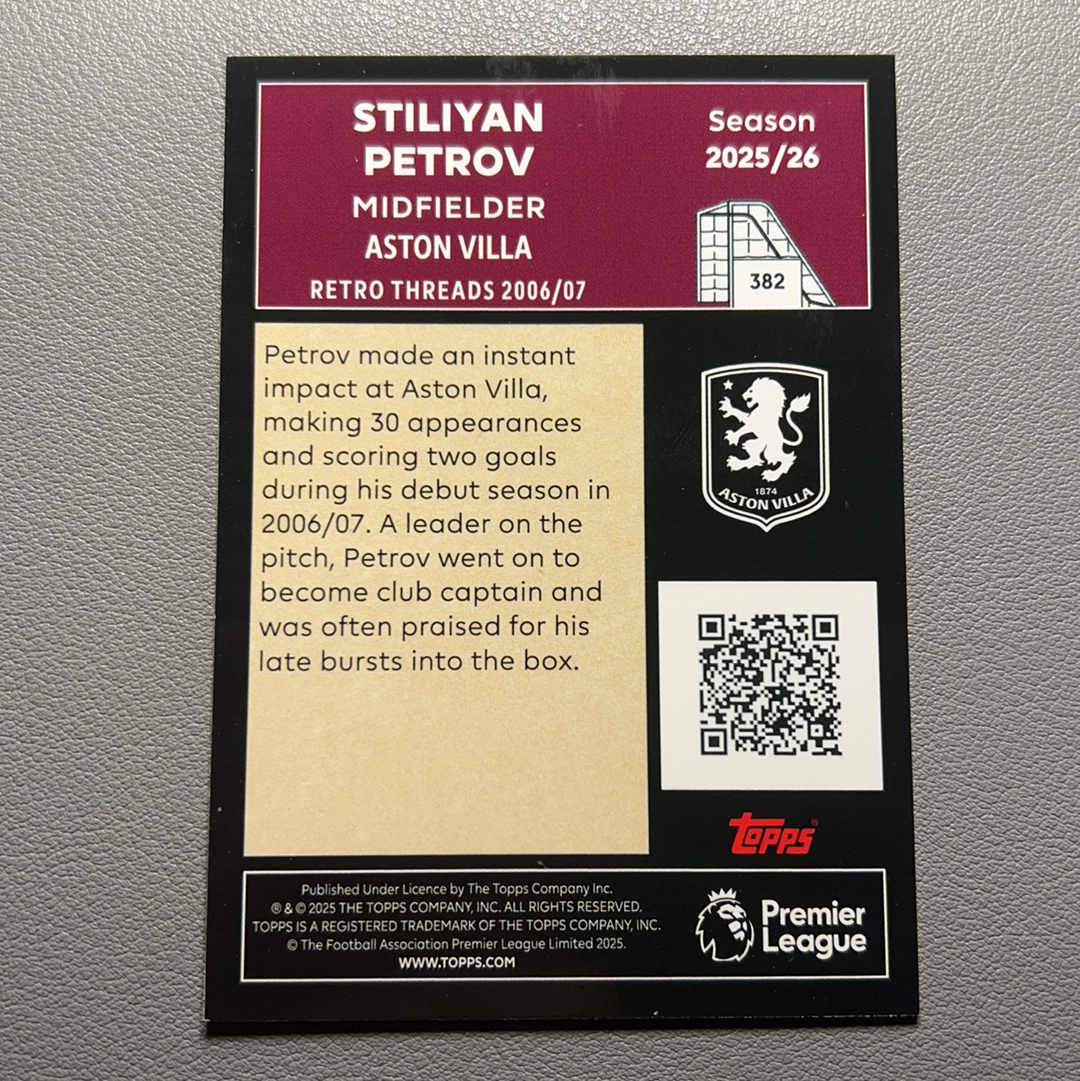 2025-26 Topps 英超 Stiliyan Petrov 彼得罗夫 保加利亚 Retro Threads 特卡 时光流逝 复古特卡 银折 折射 卡品如图 微瑕 不保卡品