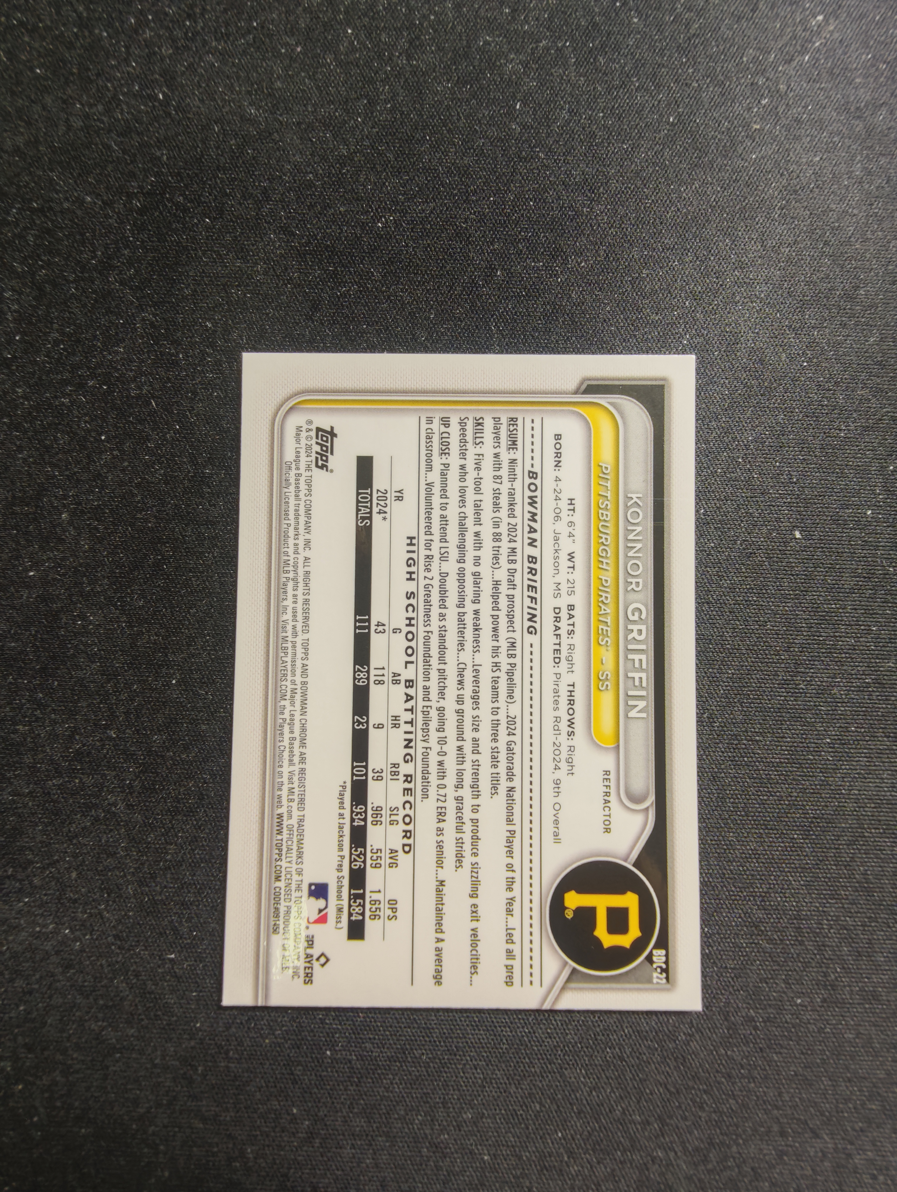 2025 Panini 小光头 不累计 棒球 TOPPS BOWMAN 1ST 银折 百大第一 KONNOR GRIFFIN 格里芬 七